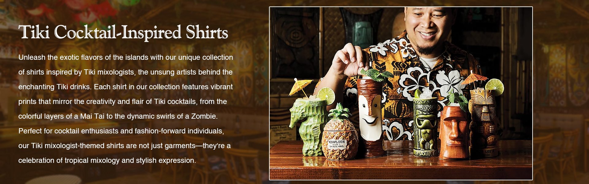 Royaura® Beach Vacation Tiki Cup Men's Hawaiian Shirt Stretch Quick Dry Camp Tropical Cocktail Shirt Big Tall