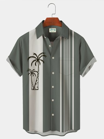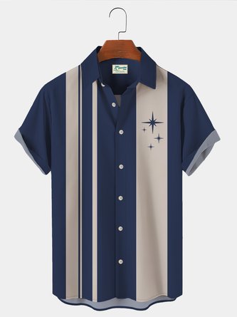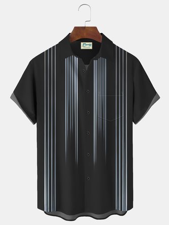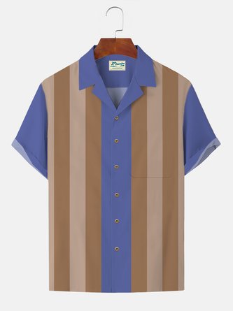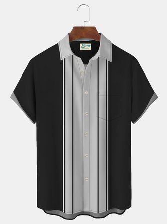 Royaura® Men's Vintage Bowling Stripes Print Button Pocket Short Sleeve Shirt Big & Tall