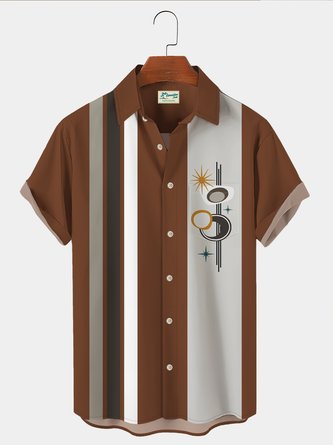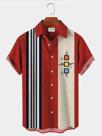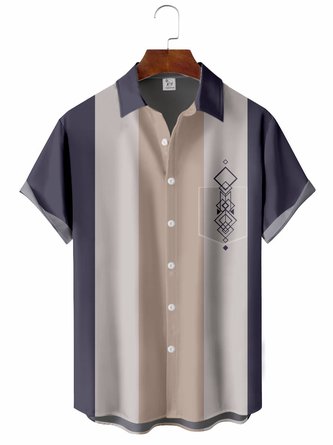Royaura® Retro Geometric Bowling Print Men's Short-Sleeved Hawaiian-style shirt with button pockets Big & Tall