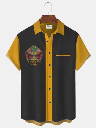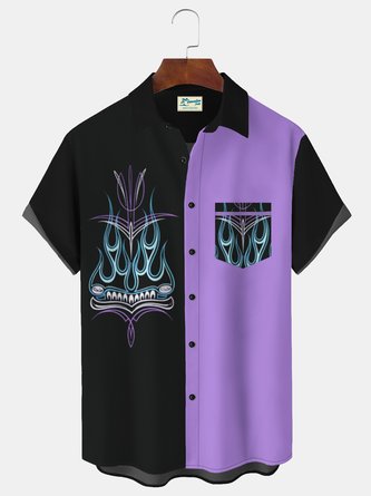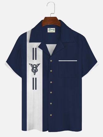 Royaura® Men's Retro Bowling Print Button Pocket Short Sleeve Shirt Big & Tall