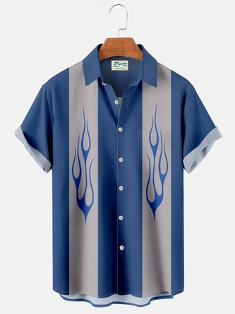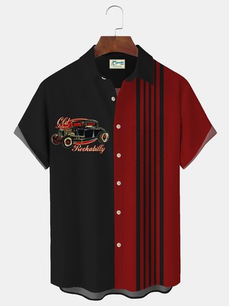 Royaura® Retro Classic Car Striped Bowling Print Men's Button Pocket Short-Sleeve Shirt Big & Tall