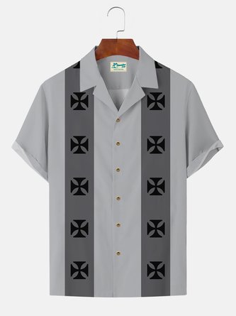 Royaura® Geometric Medieval Bowling Print Men's Button-Down Short-Sleeve Hawaiian Shirt Big & Tall