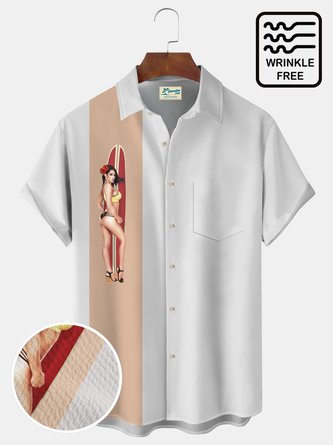Royaura® Men's Vintage Western Girl Lucky Print Retro Short Sleeve Shirt Big & Tal
