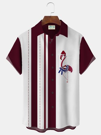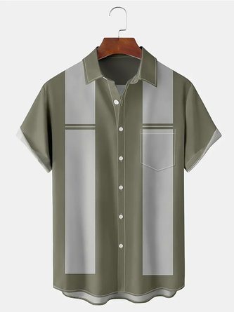 Royaura® Retro Bowling Geometric Stripe Print Men's Button Pocket Short Sleeve Shirt Big & Tall