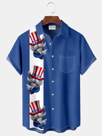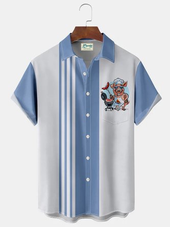 Royaura® Bowling Cartoon Print Men's Button Pocket Short-Sleeve Shirt Big & Tall