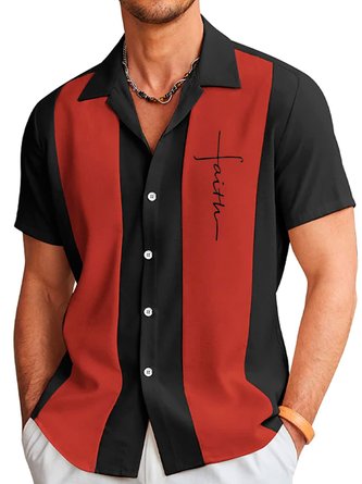 Royaura®Bowling Letter Print Men's Button Pocket Short-Sleeved Hawaiian shirt Big & Tall