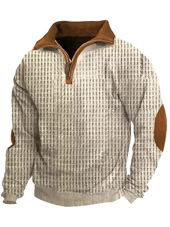 Royaura® Suede Print Men's Zipper Stand Collar Sweatshirt, Zipper Jacket Big & Tall