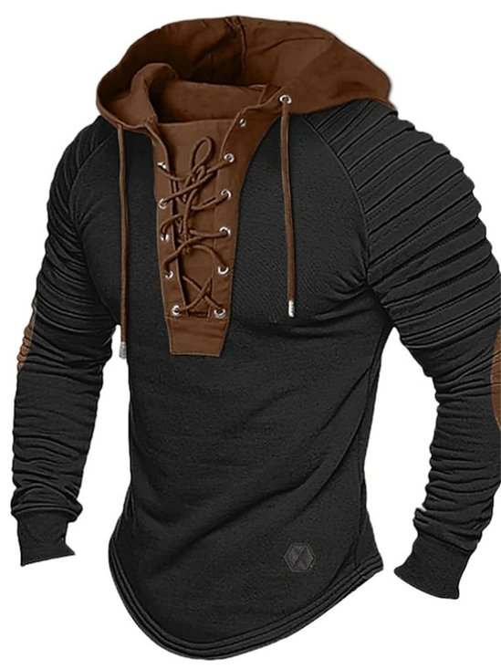 Royaura® Vintage Men's Casual Fashion Ethnic Style Button Drawstring Hooded Sweatshirt