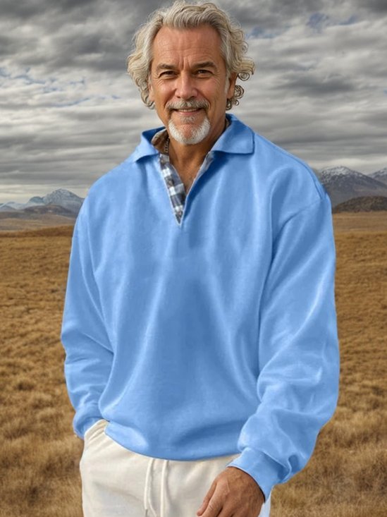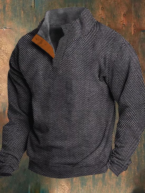 Royaura® Basic Men's Casual Fashion Lapel Button Jacquard Small Checkered Sweatshirt