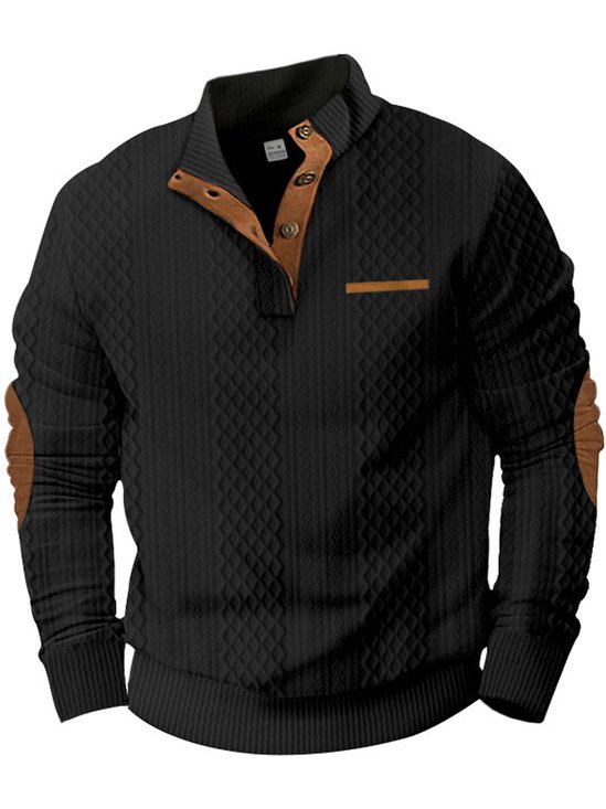 Royaura® Western Two-tone Contrast Stitching Men's Stand Collar Button Sweatshirt Big & Tall
