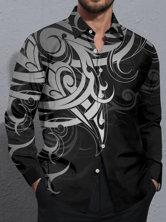 Royaura® Vintage Gradient Art Print Fashion Men's Button Bagless Silk Like Satin Long Sleeve Shirt Big Tall