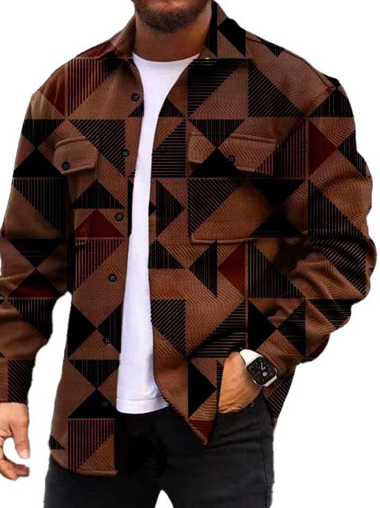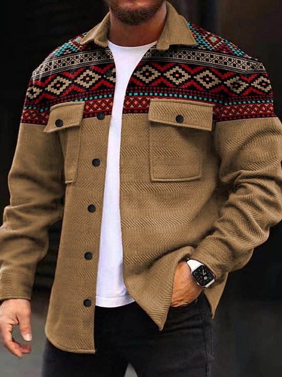Royaura® Old Money Style Retro Washed Print Men's Button Pocket Lapel Long Sleeve Shirt Big & Tall
