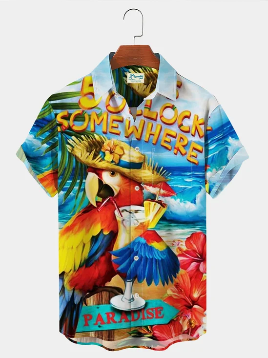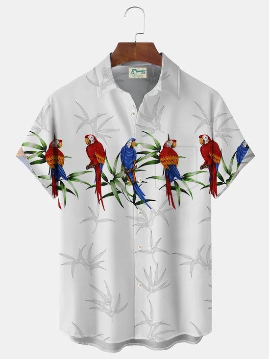 Men's Casual Holiday Party Parrot Print Short Sleeve Hawaiian Shirt