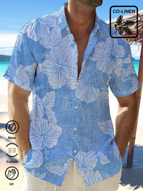 Royaura® Cotton Linen Natural Fiber Floral Hawaiian Shirt Oversized Vacation Aloha Shirt