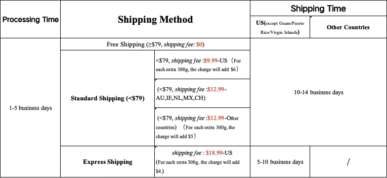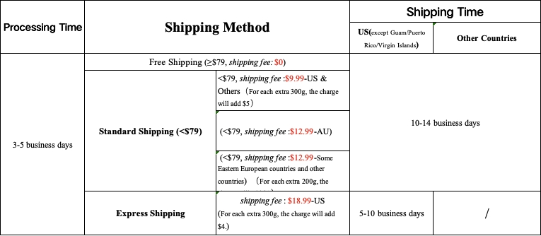 We offer free shipping on orders over US$79.
