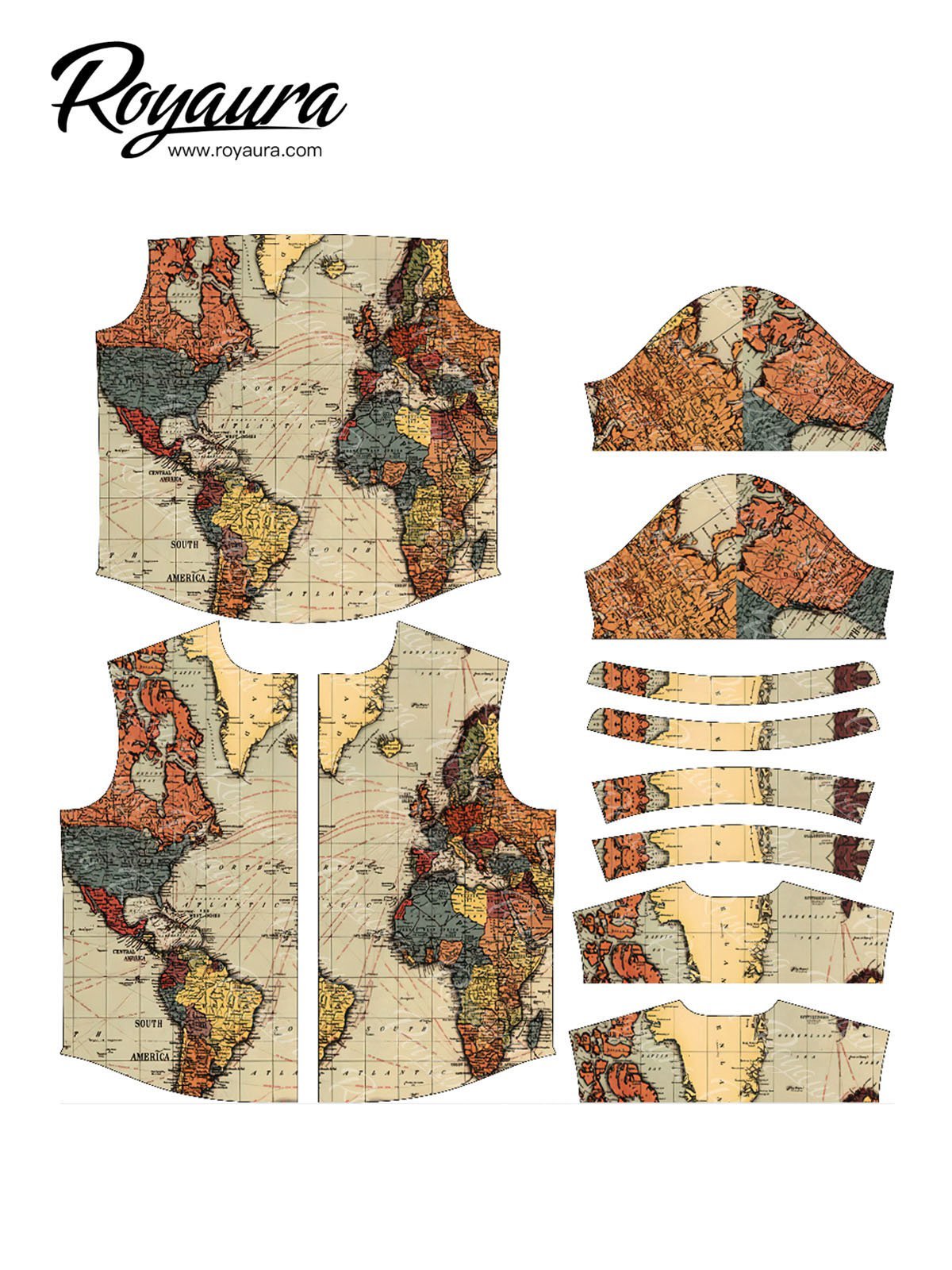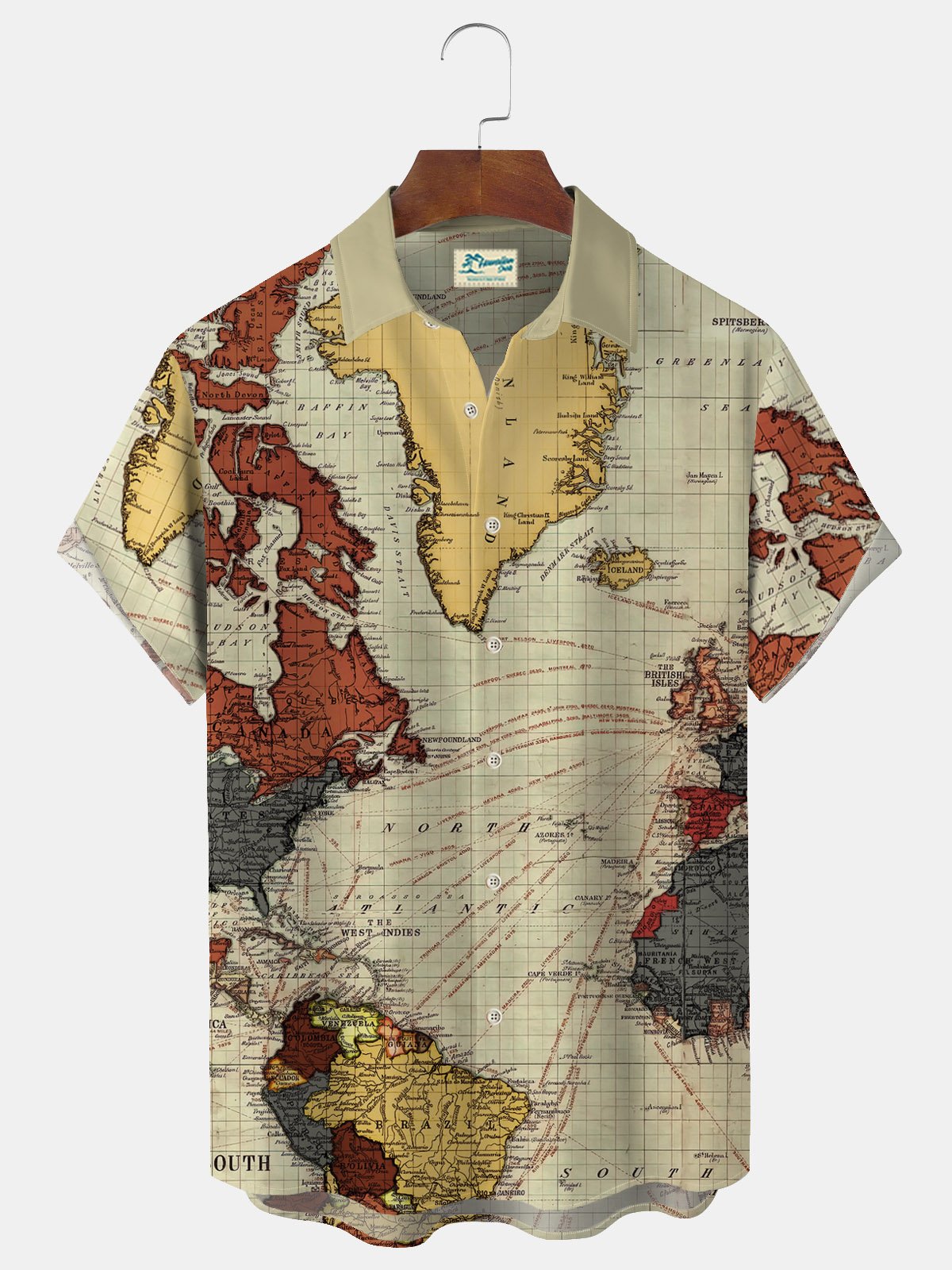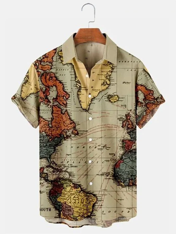 Royaura Men's World Map Printed Vintage Travel Button-Down Hawaiian Shirts