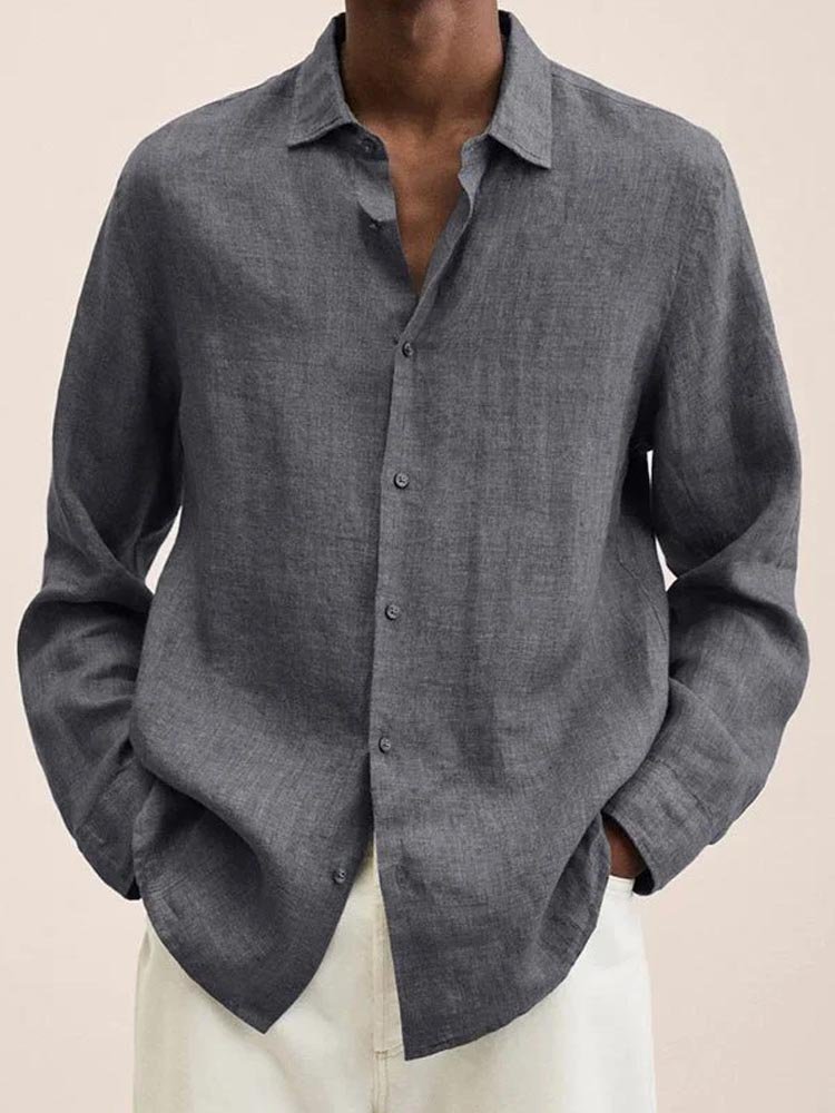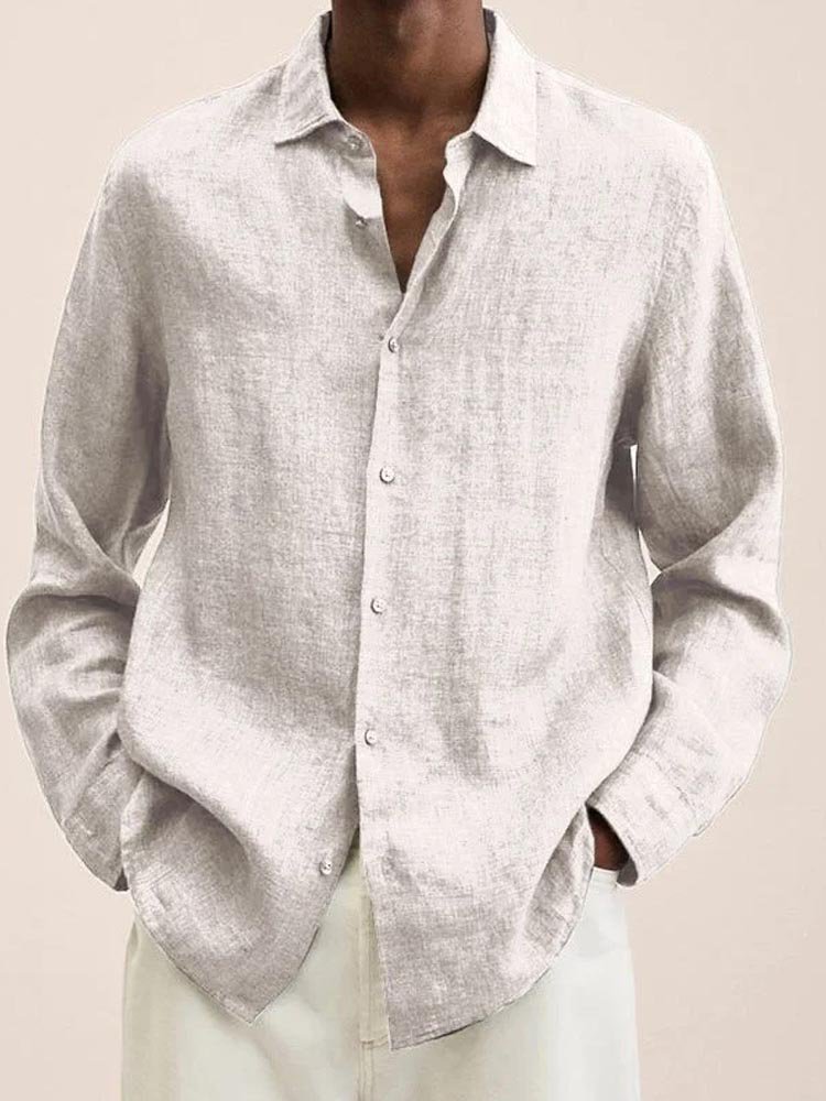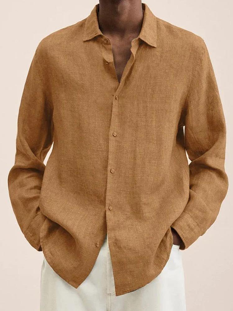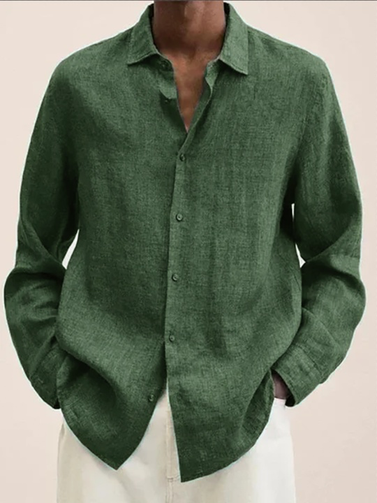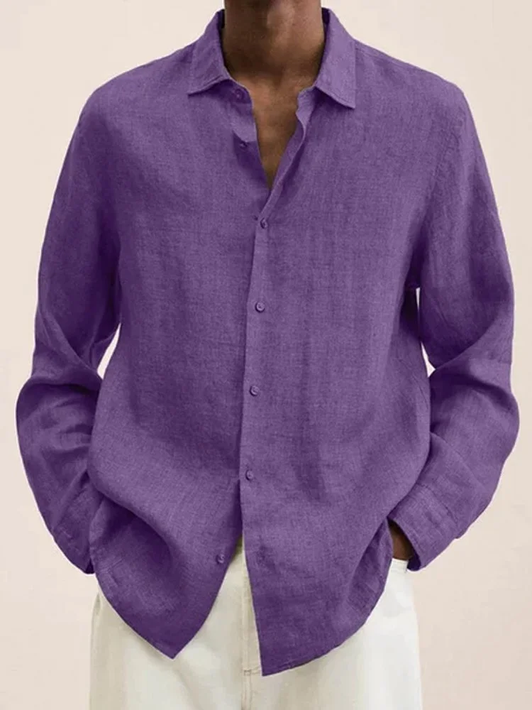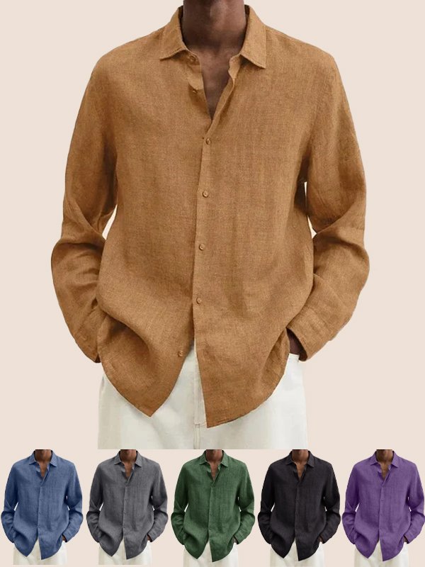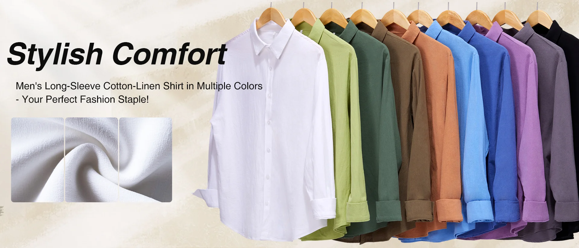 Royaura Men's Casual Basic Solid Color Long Sleeve Cotton Linen Shirts & Tops