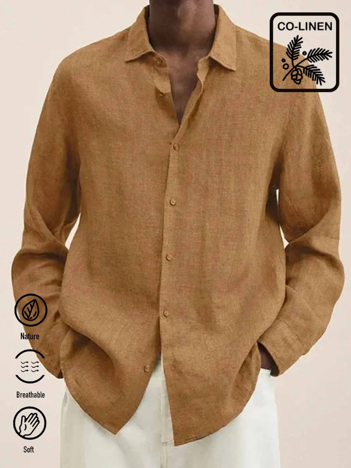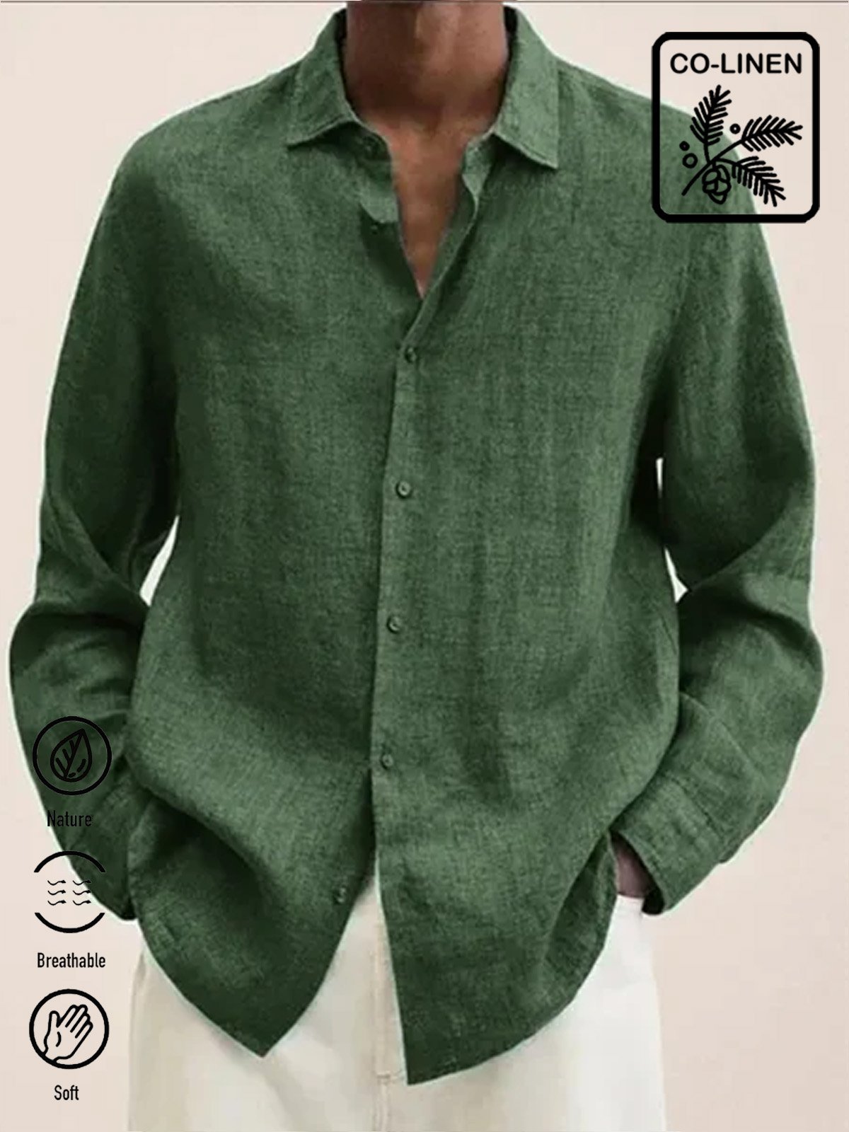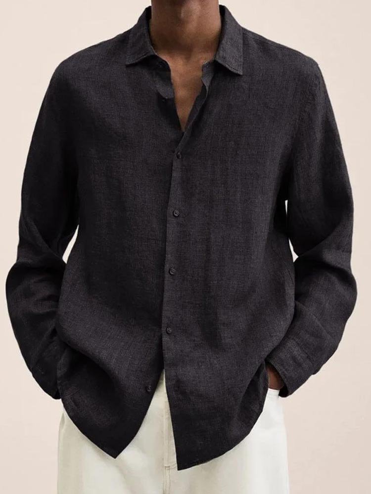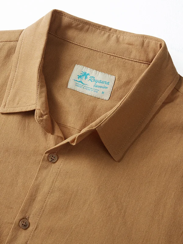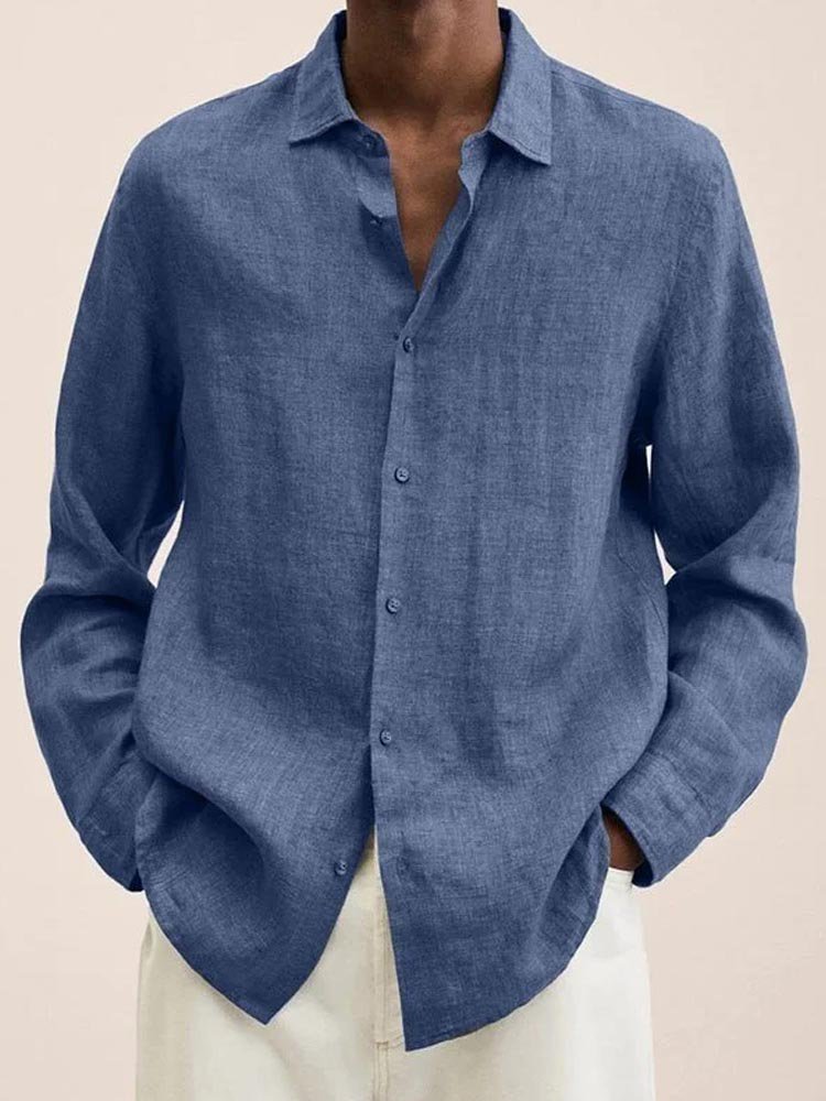 Royaura Men's Casual Basic Solid Color Long Sleeve Cotton Linen Shirts & Tops