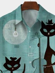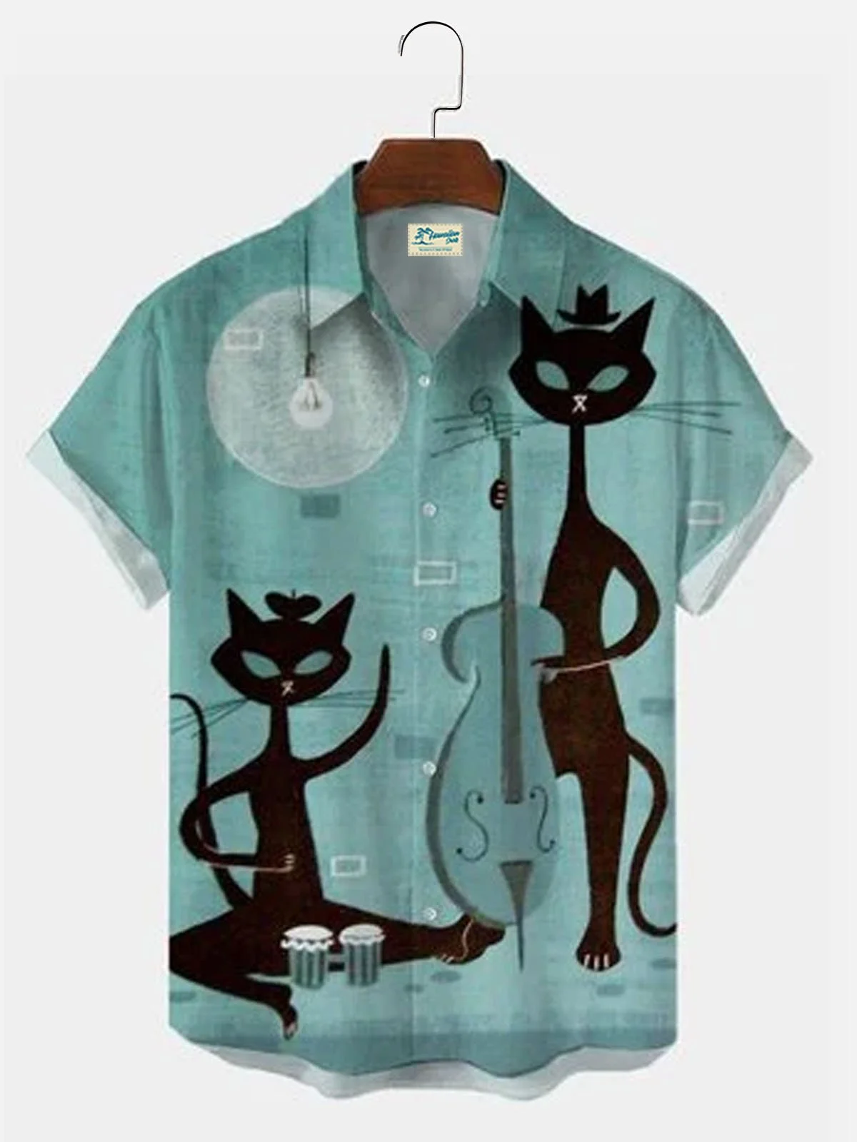 Hawaiian Retro Abstract Cat Elements Men's Casual Short-sleeved Shirt