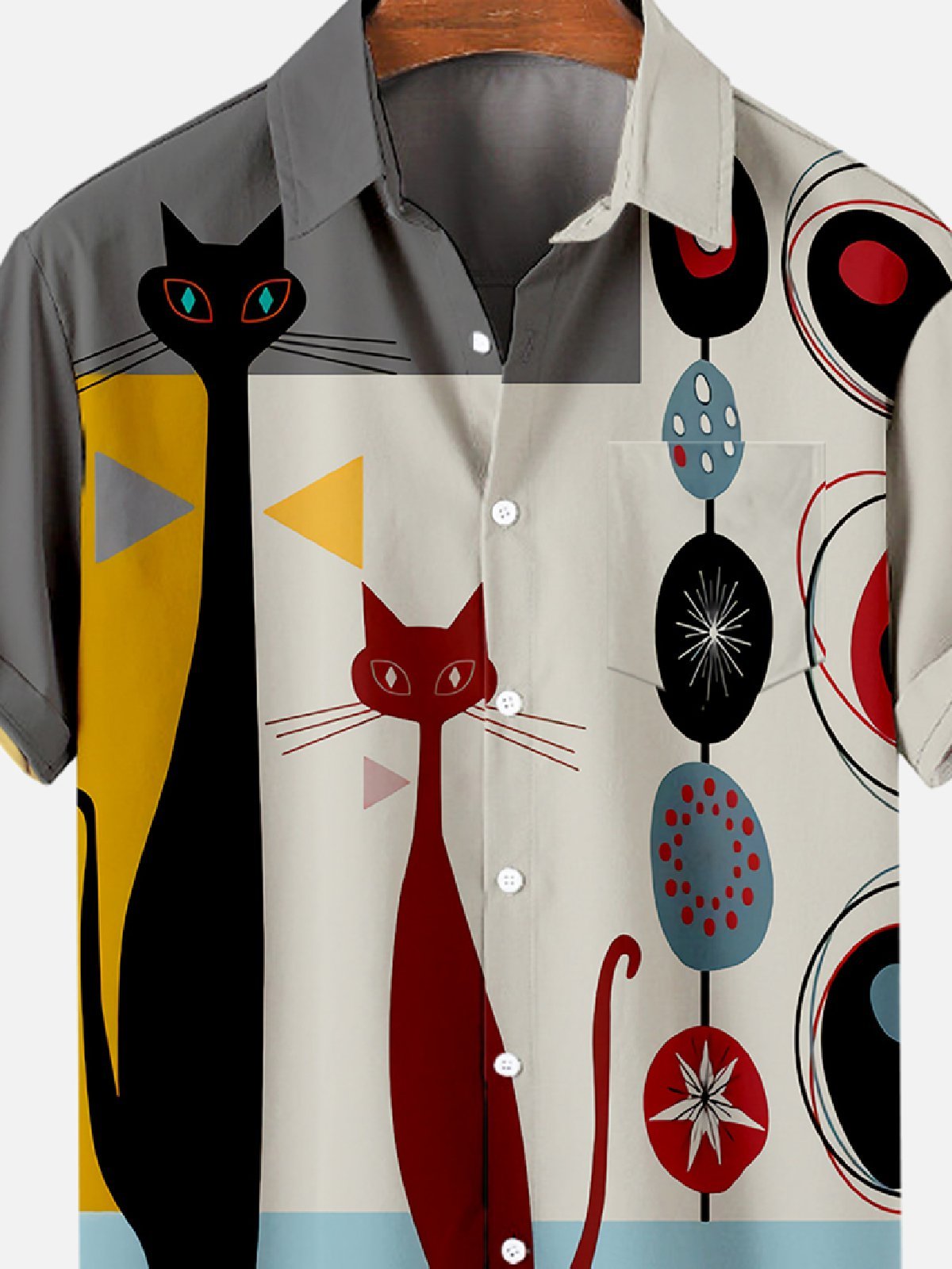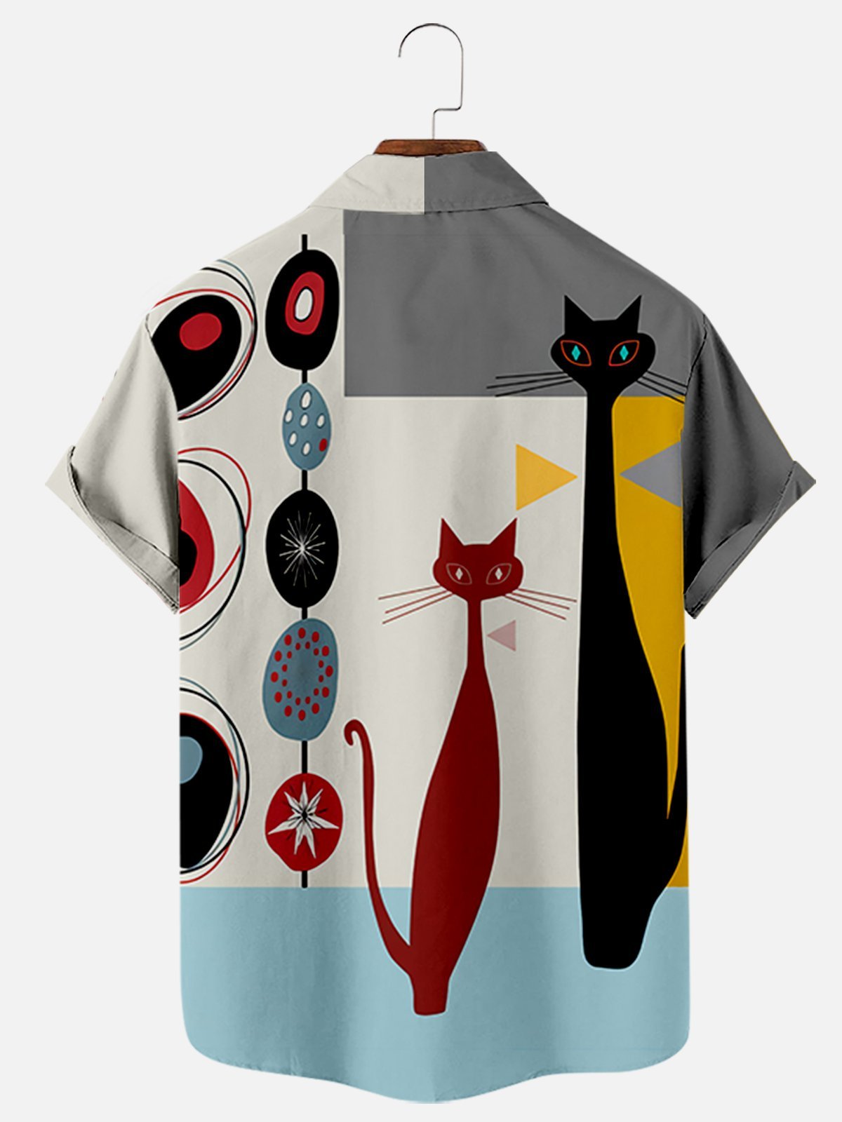 Men's Abstract Vintage Shirt Cat Printed collar Tops