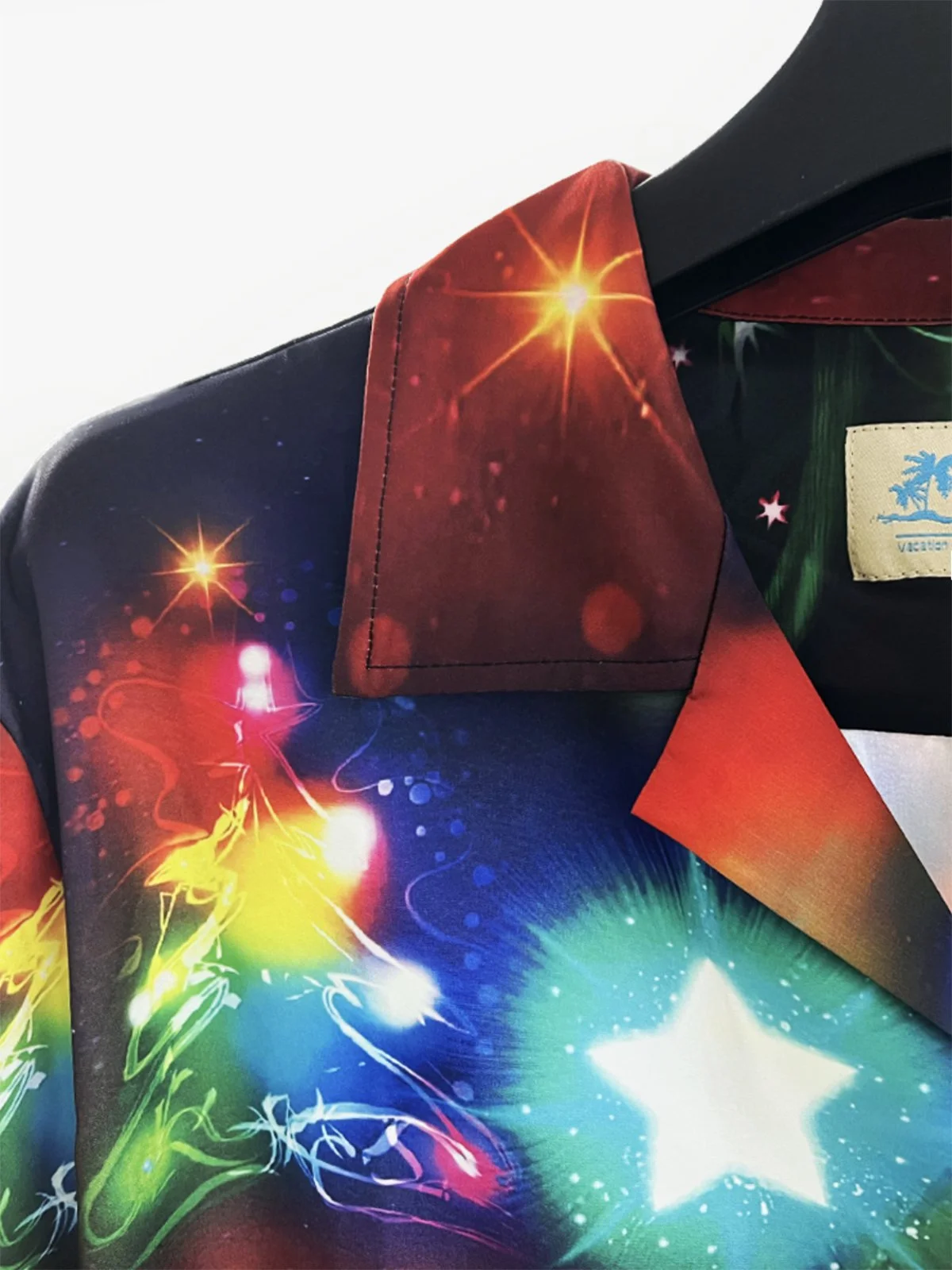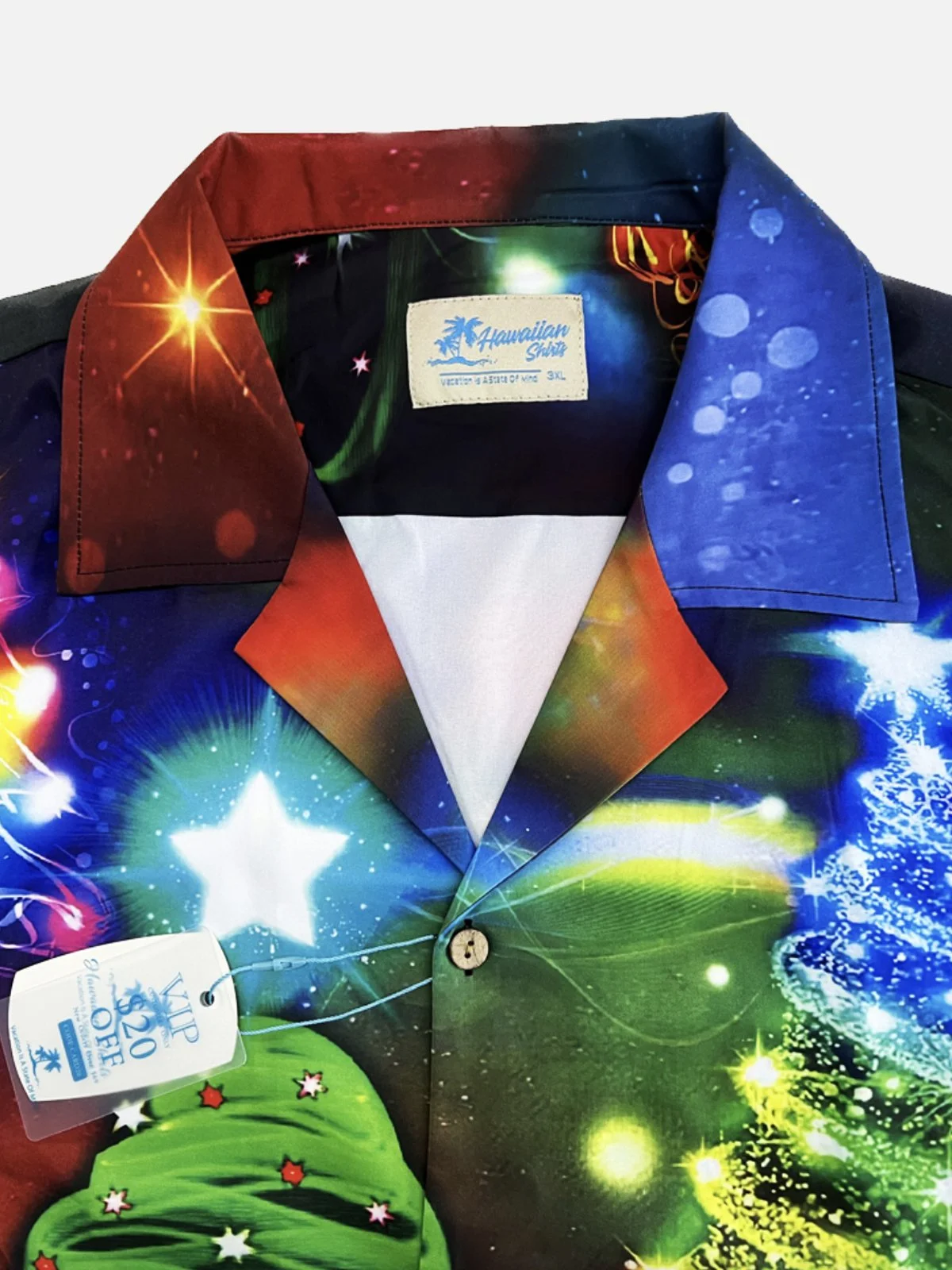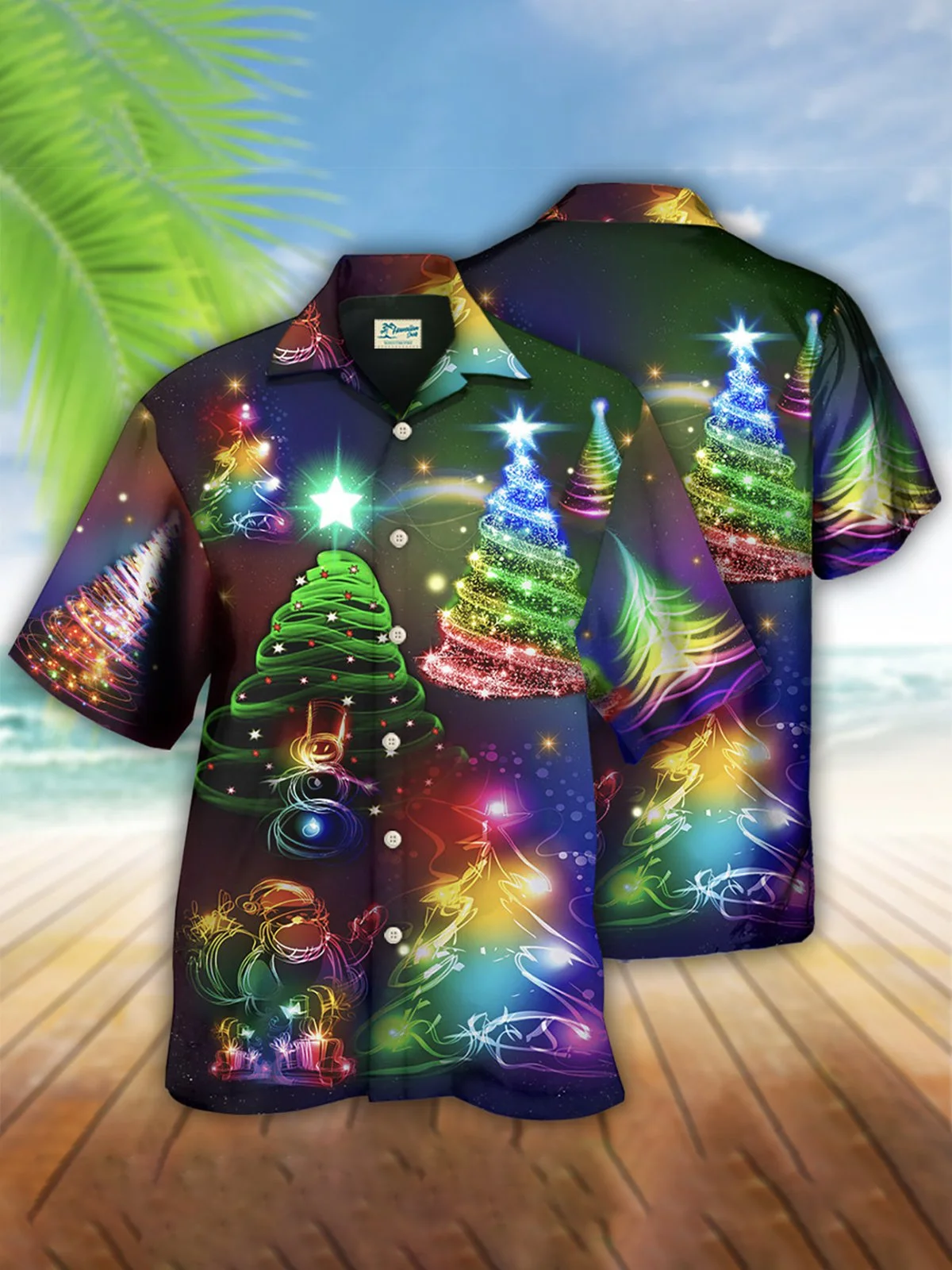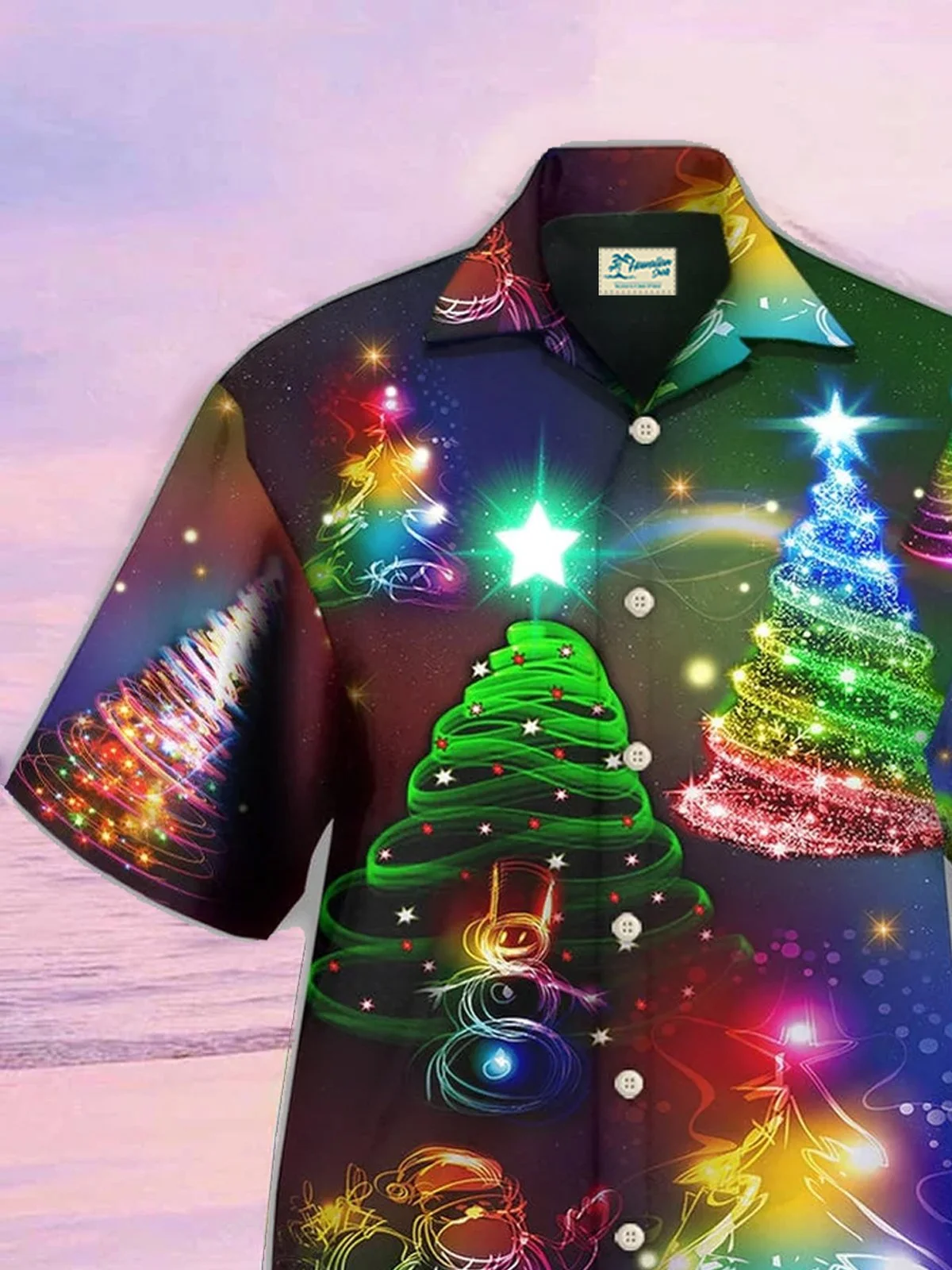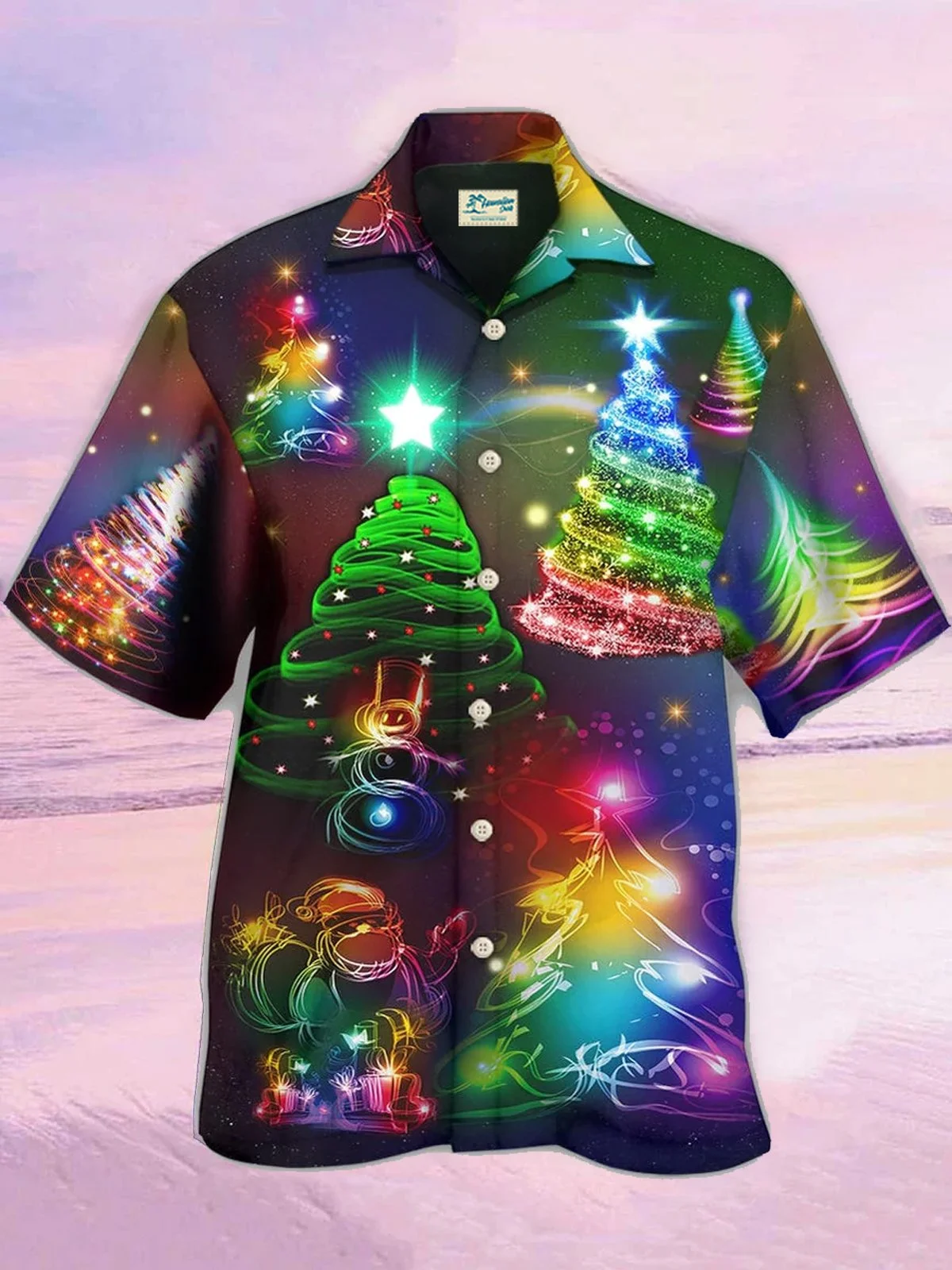 Royaura Men's Christmas Pine Tree Print Loose Short Sleeve Shirts