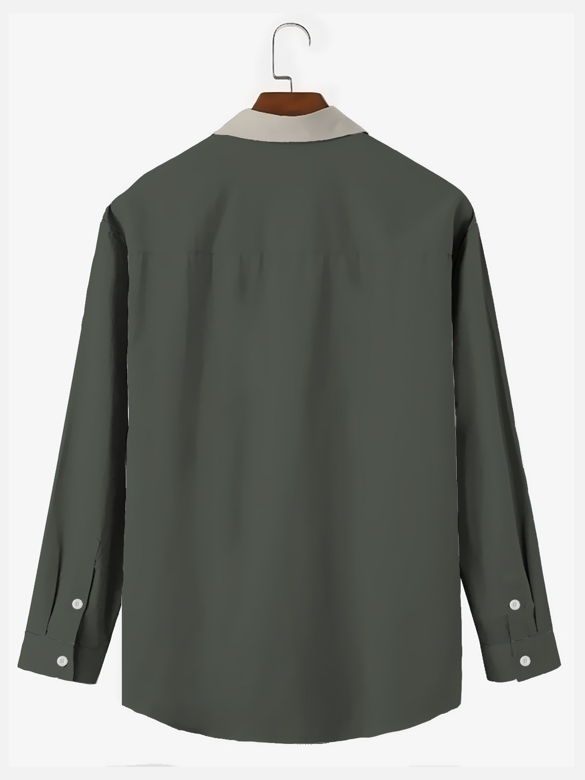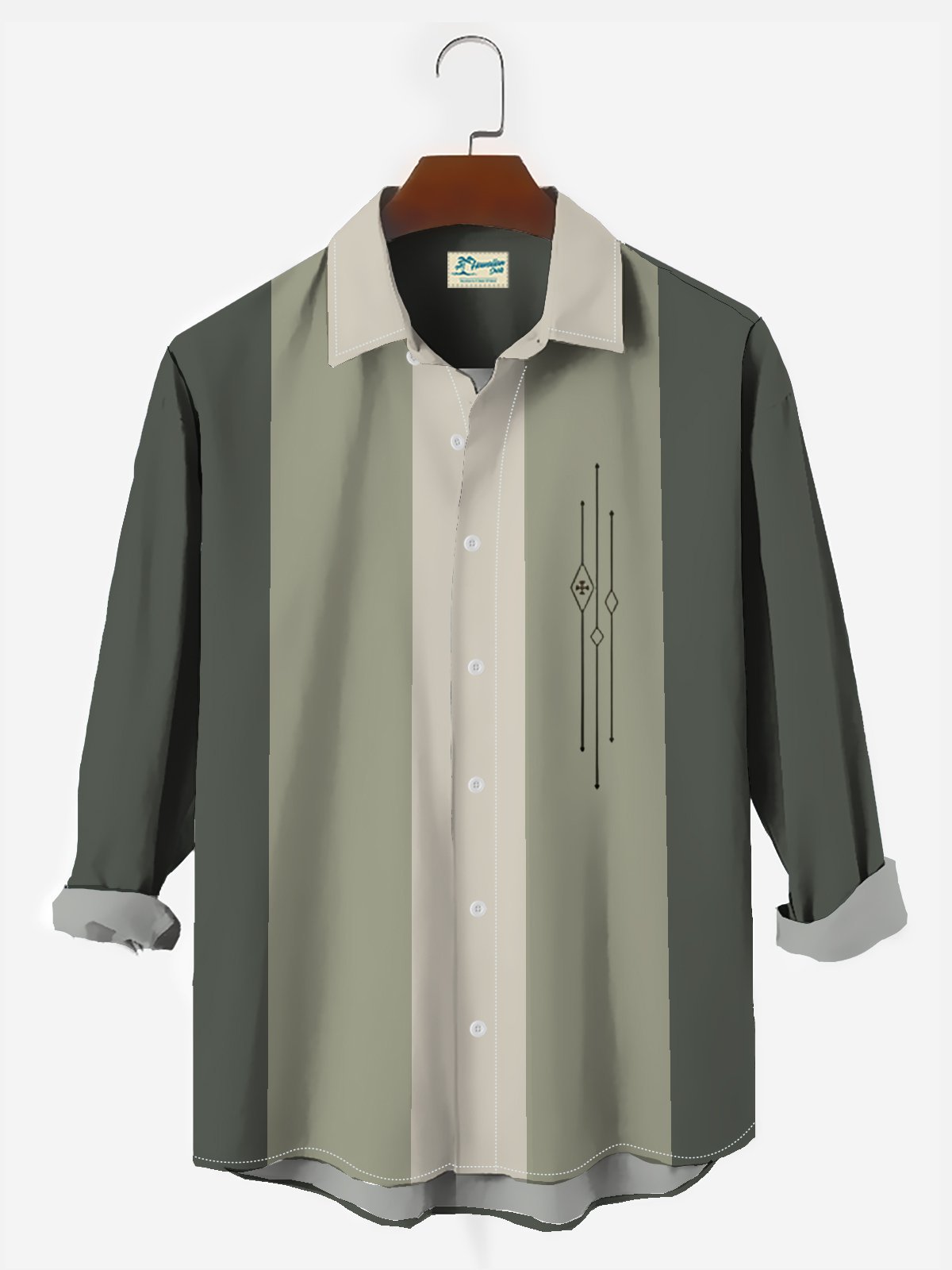 Men's Colorblock Striped Casual Breathable Bowling Long Sleeve Shirt