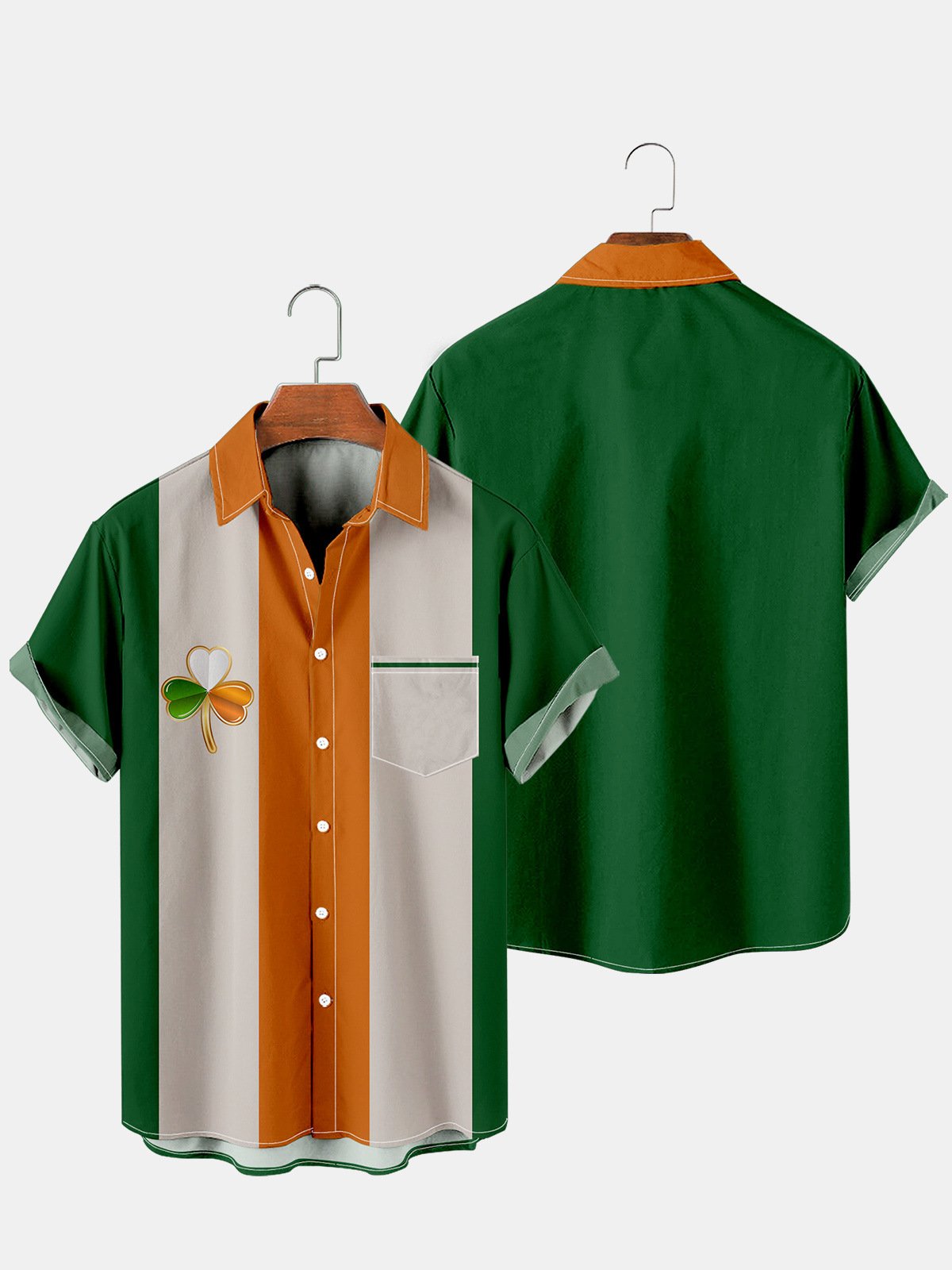 Royaura Mens St Patrick’s Day Shamrock Print Casual Breathable Short Sleeve Hawaiian Shirt