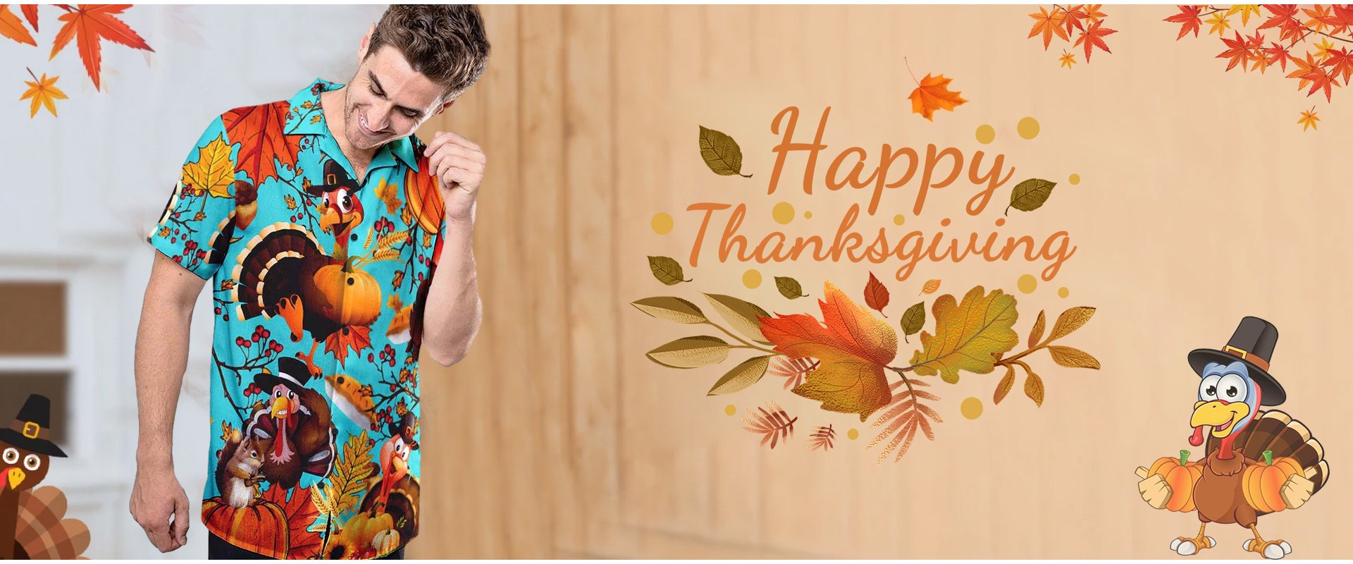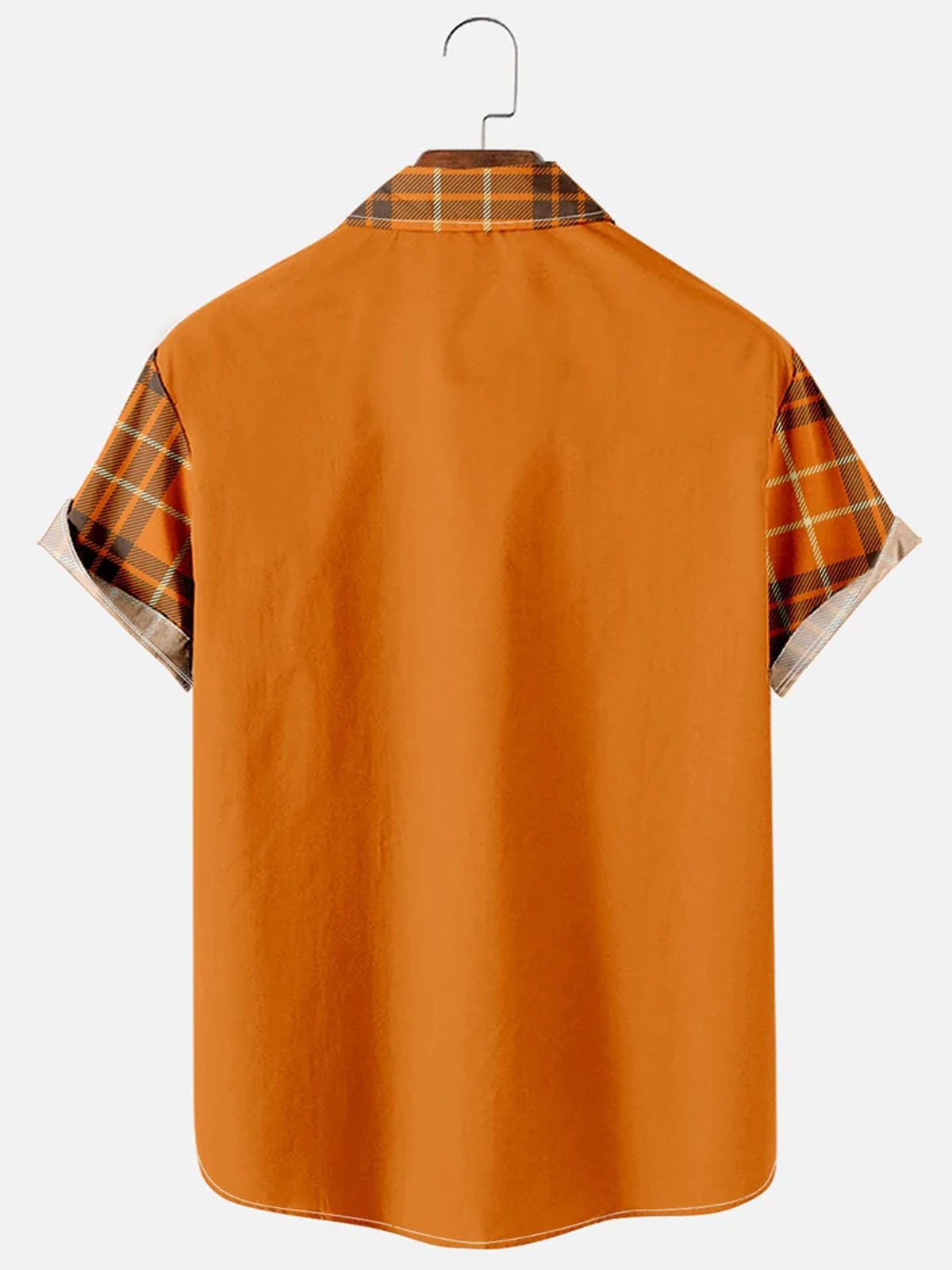 Men's Thanksgiving Fun Turkey Plaid Patchwork Print Short Sleeve Shirt