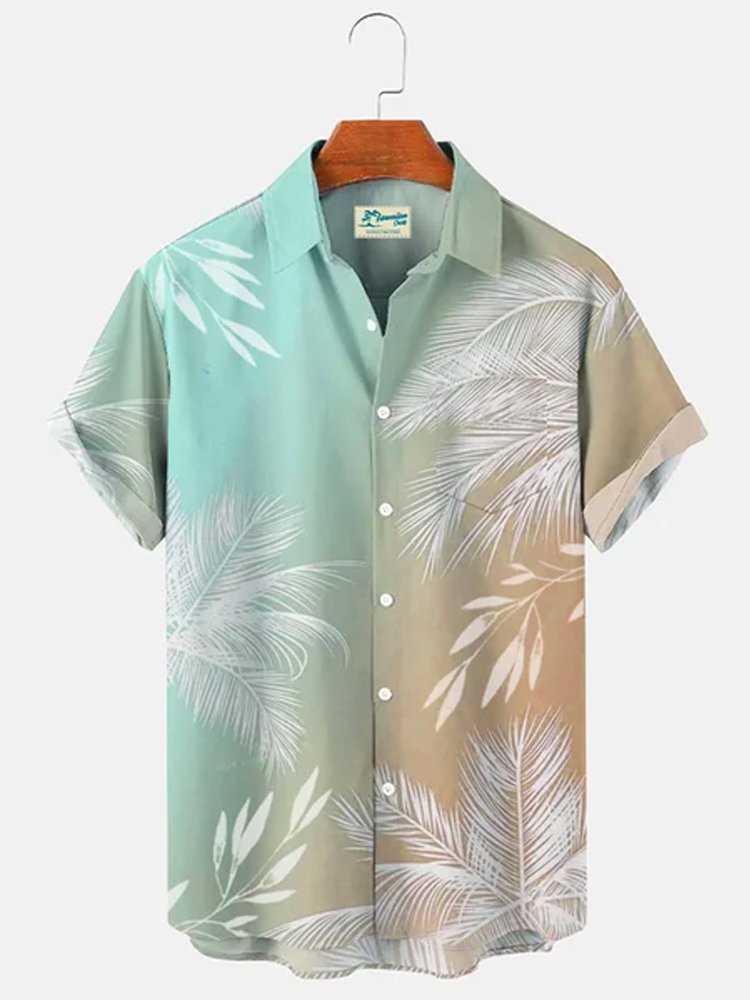 Royaura Multicolor Vacation Gradient Hawaiian Short Sleeve Seersucker Wrinkle Free Shirt Top