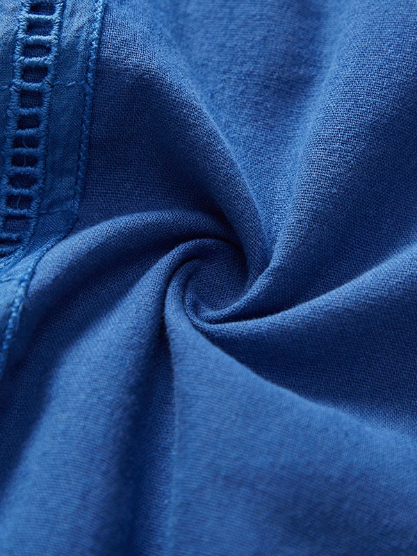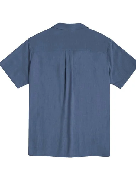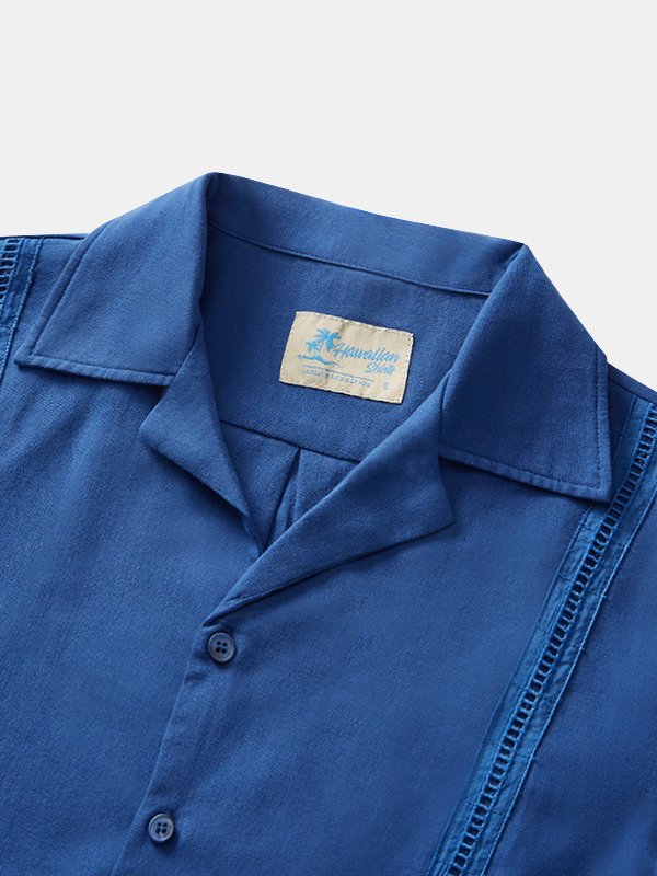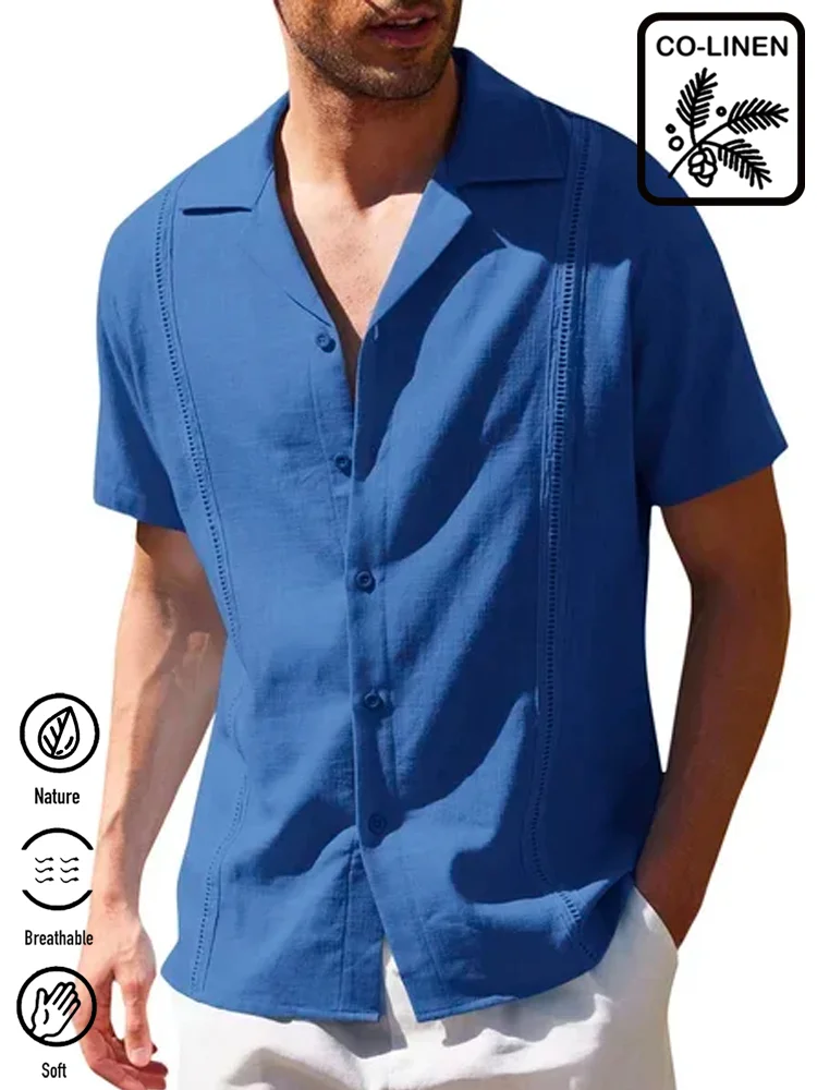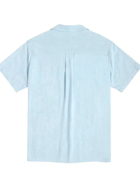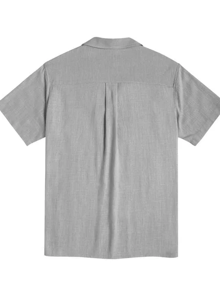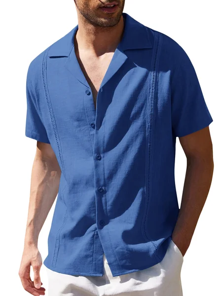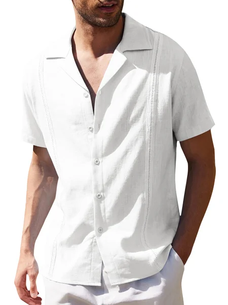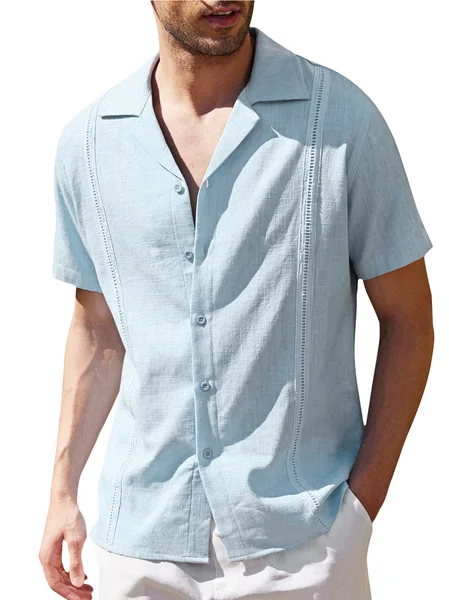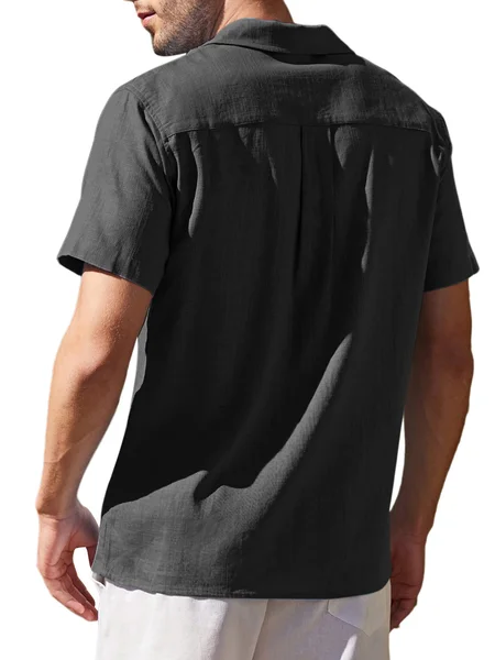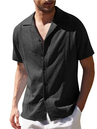 Men's Casual Cotton Linen Solid Color Camp Collar Plain Short Sleeve Shirt