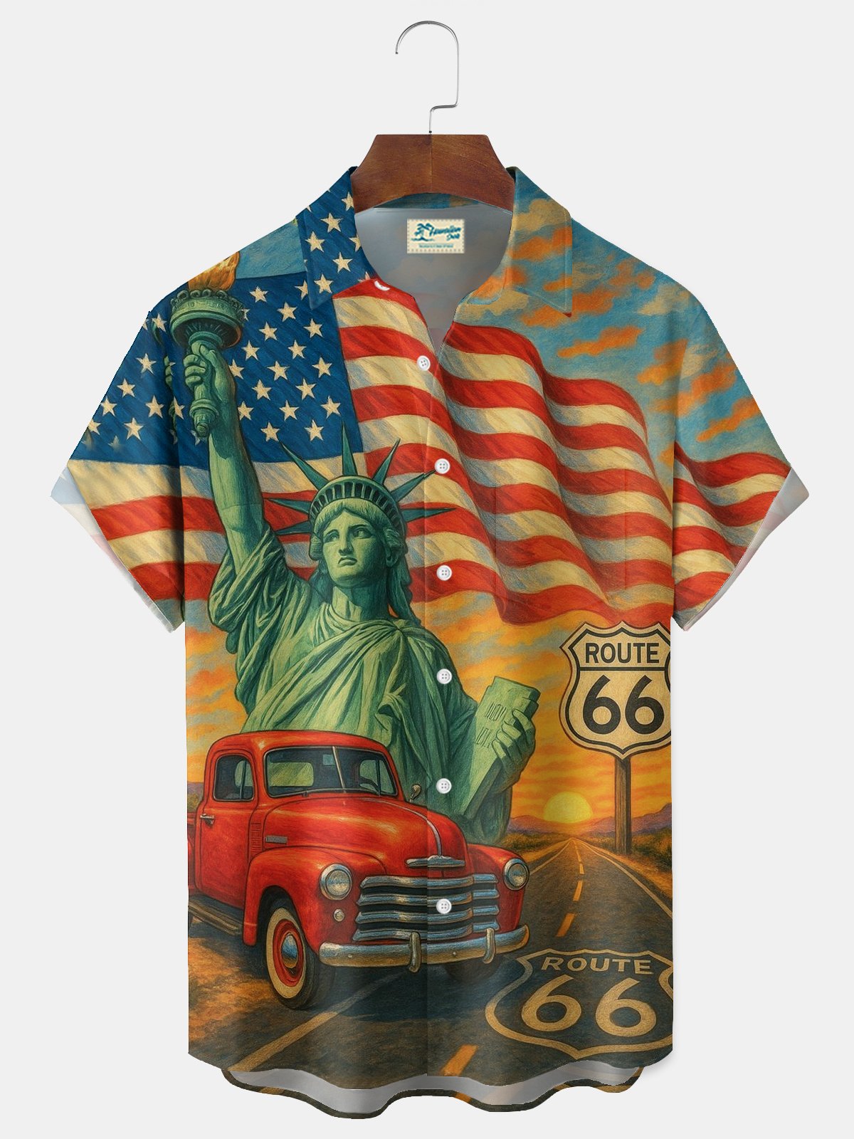 Royaura® 250th Anniversary American Flag Route 66 Print Men's Button-Down Pocket Short-Sleeve Shirt Big & Tall