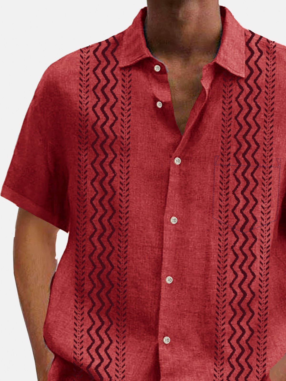 Royaura® Cotton Linen  60's Vintage Men's Guayabera Shirt Stretch Pocket Camp Shirt Big Tall