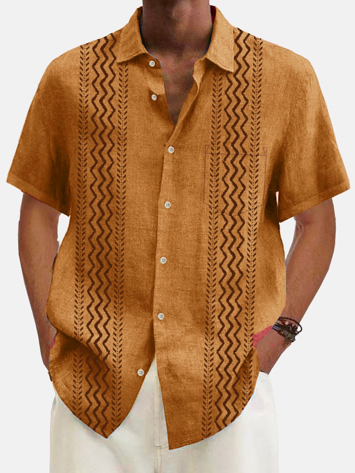 Royaura® Cotton Linen 60's Vintage Men's Guayabera Shirt Stretch Pocket Camp Shirt Big Tall
