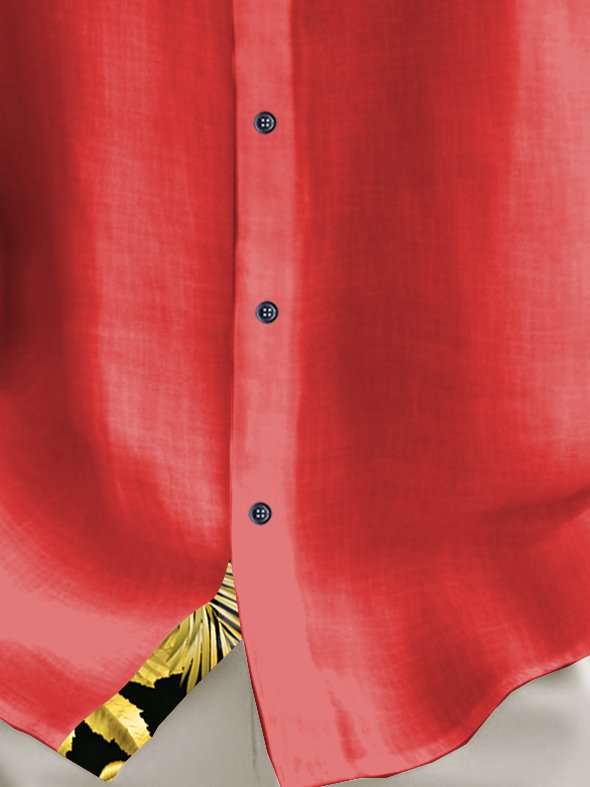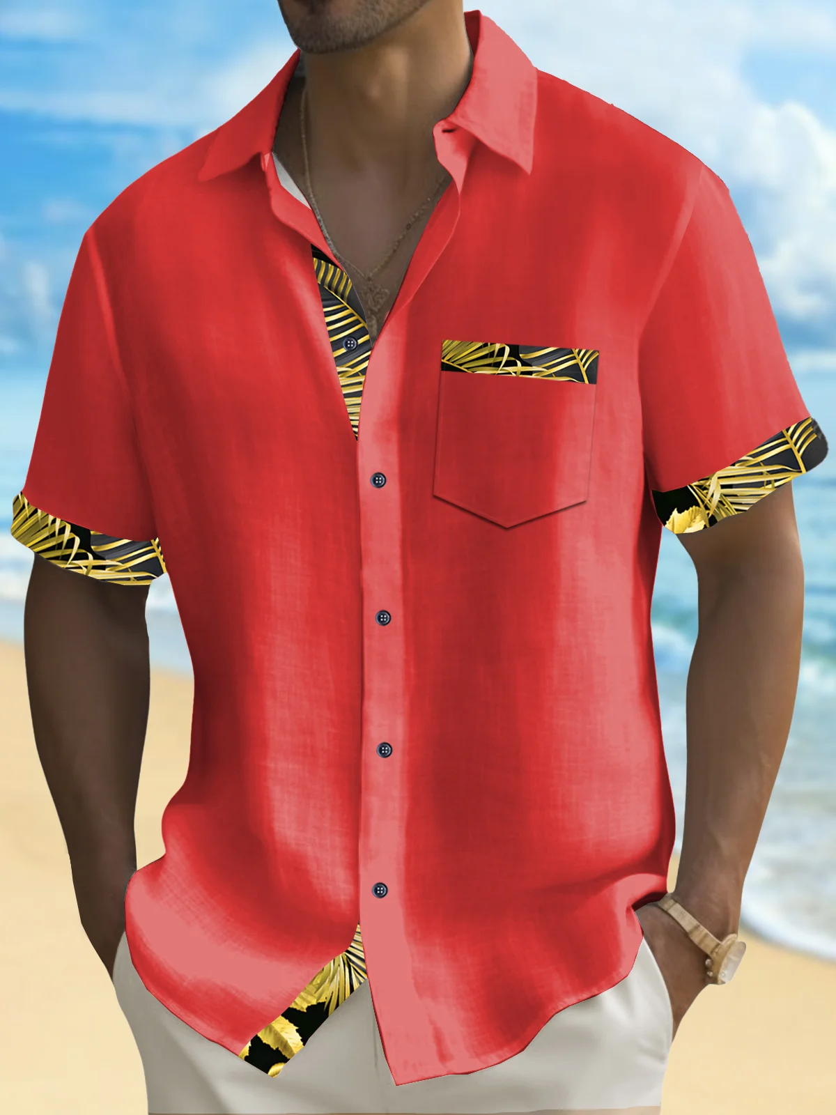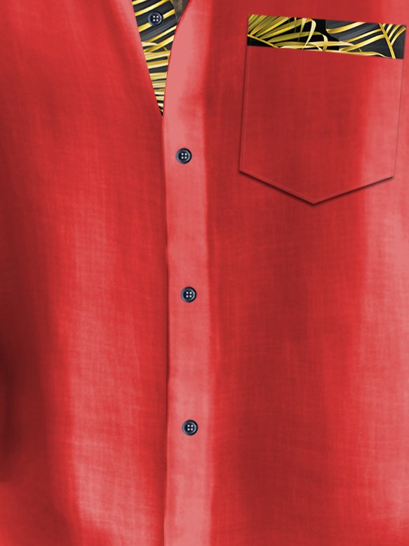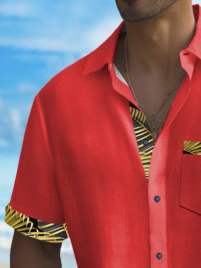 Royaura® Basic Men's Hawaiian Shirt Gold Botanical Print Stretch Pocket Camping Shirt