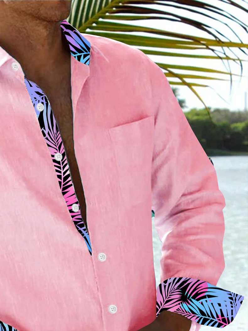 Royaura® Basic Men's Pink Botanical Print Button Down Long Sleeve Shirt