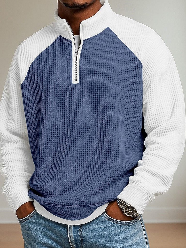 Royaura® Basic Waffle Knit Men's Stand-Up Collar Zip-Up Long-Sleeve SweatshirtBig & Tall