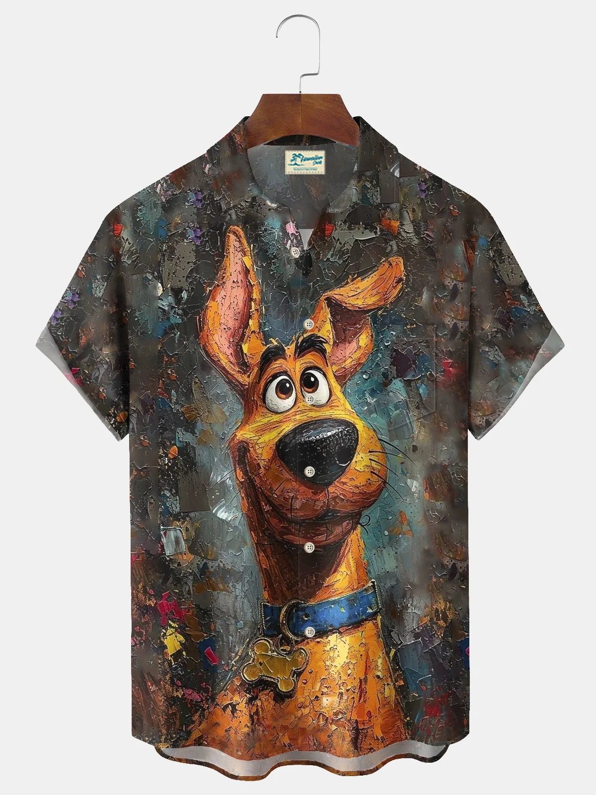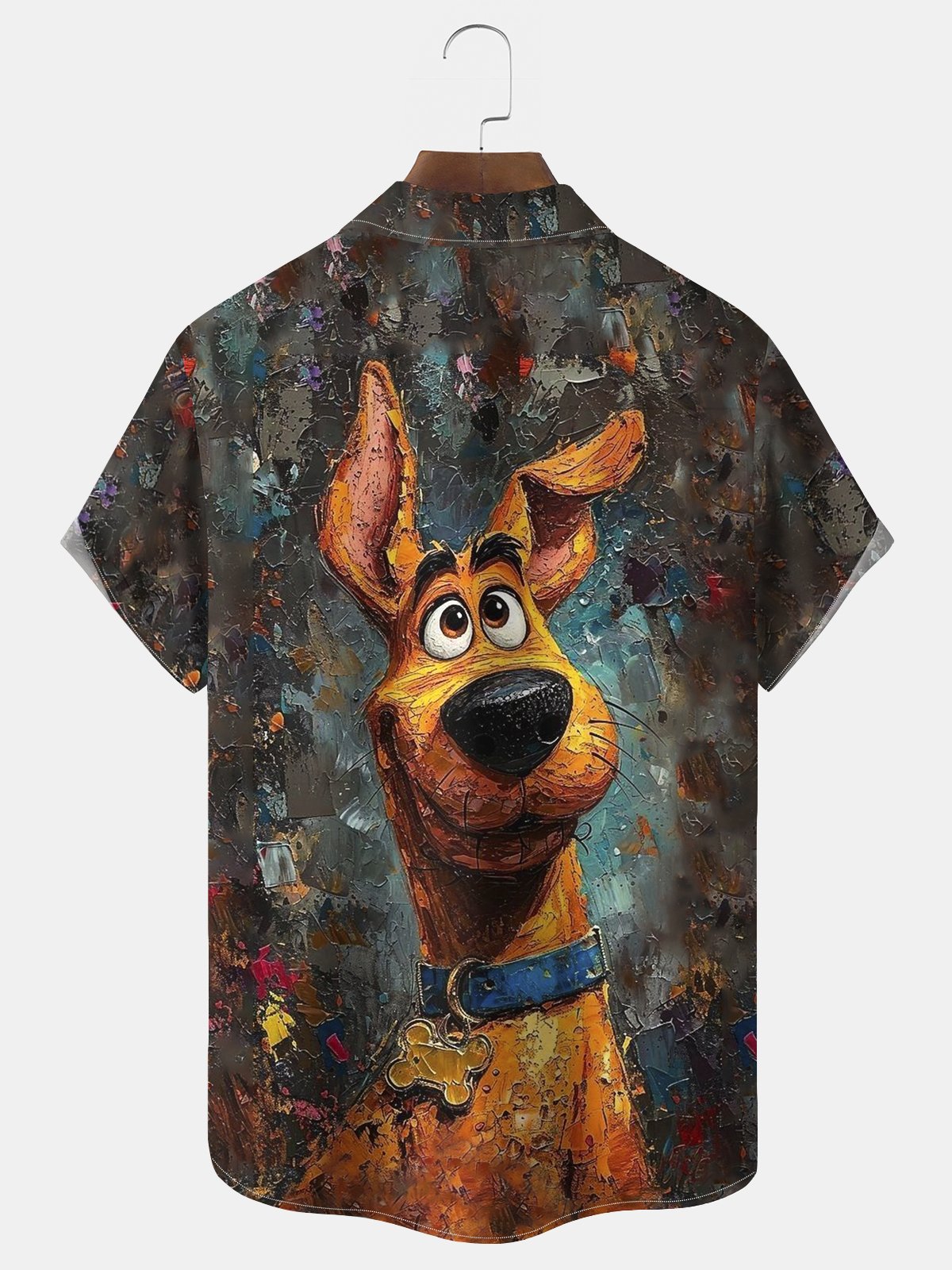 Royaura® Beach Resort Men's Hawaiian Shirt Dog Print Pocket Camping Shirt Big Tall