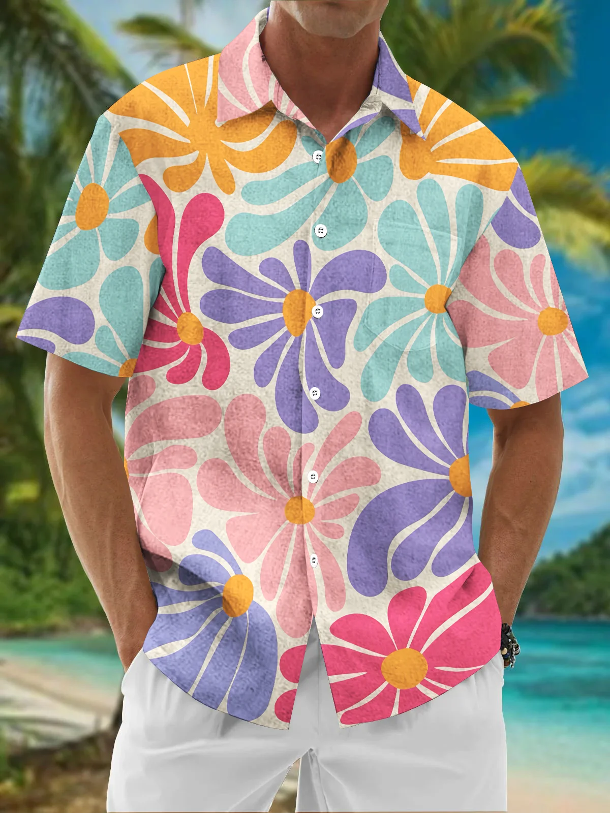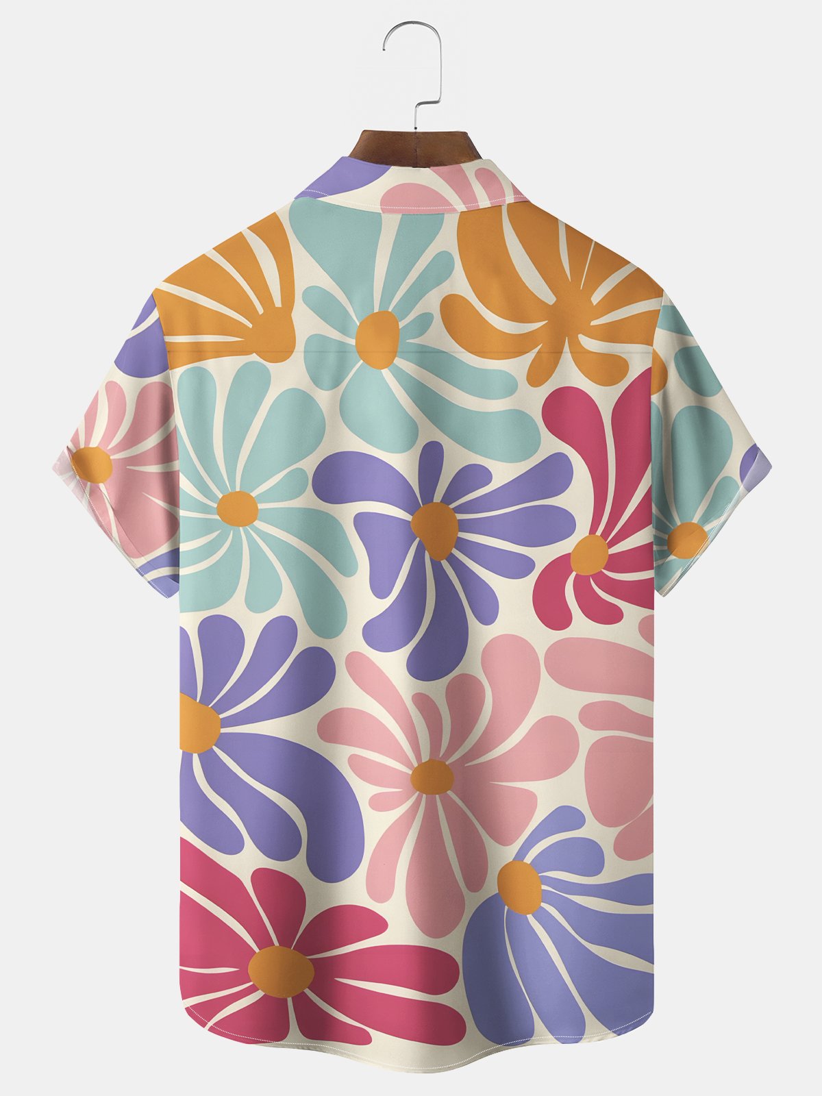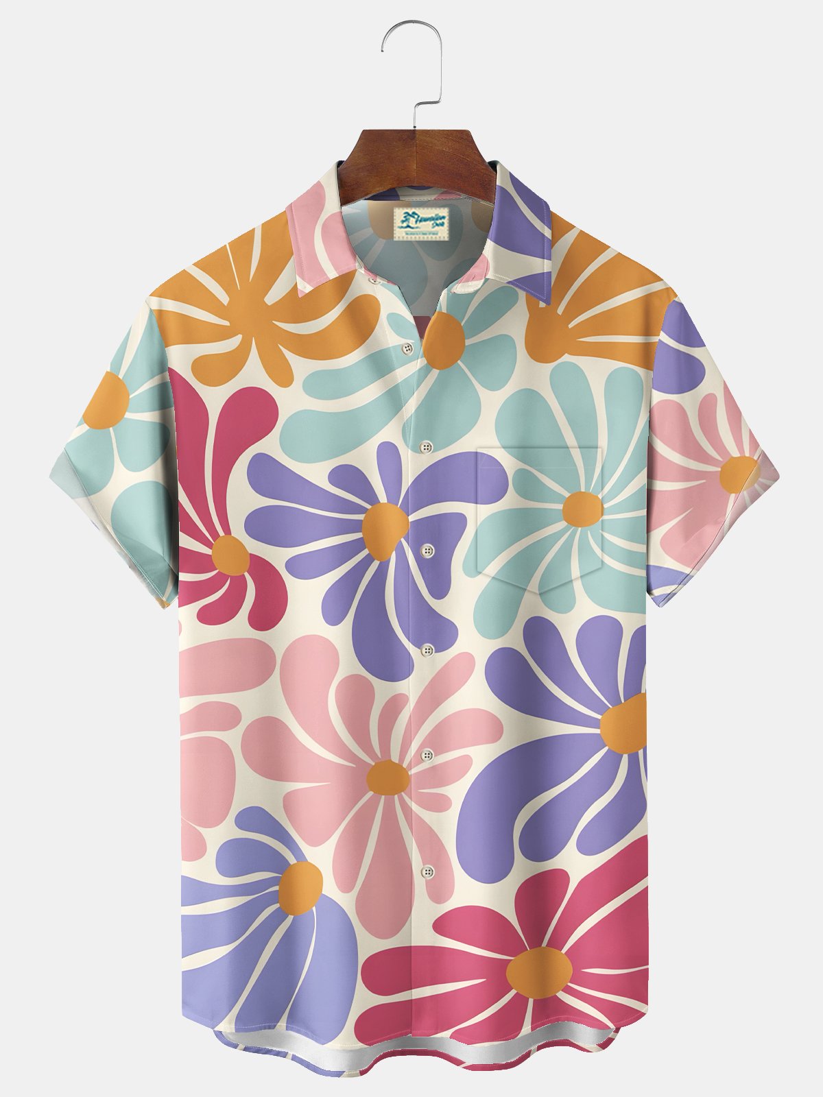 Royaura® Beach Resort Men's Hawaiian Shirt Floral Print Pocket Camping Shirt Big Tall