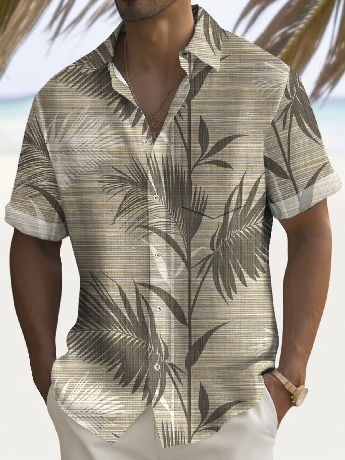 Royaura® Beach Resort Men's Hawaiian Shirt Plant Print Pocket Camping Shirt Big Tall