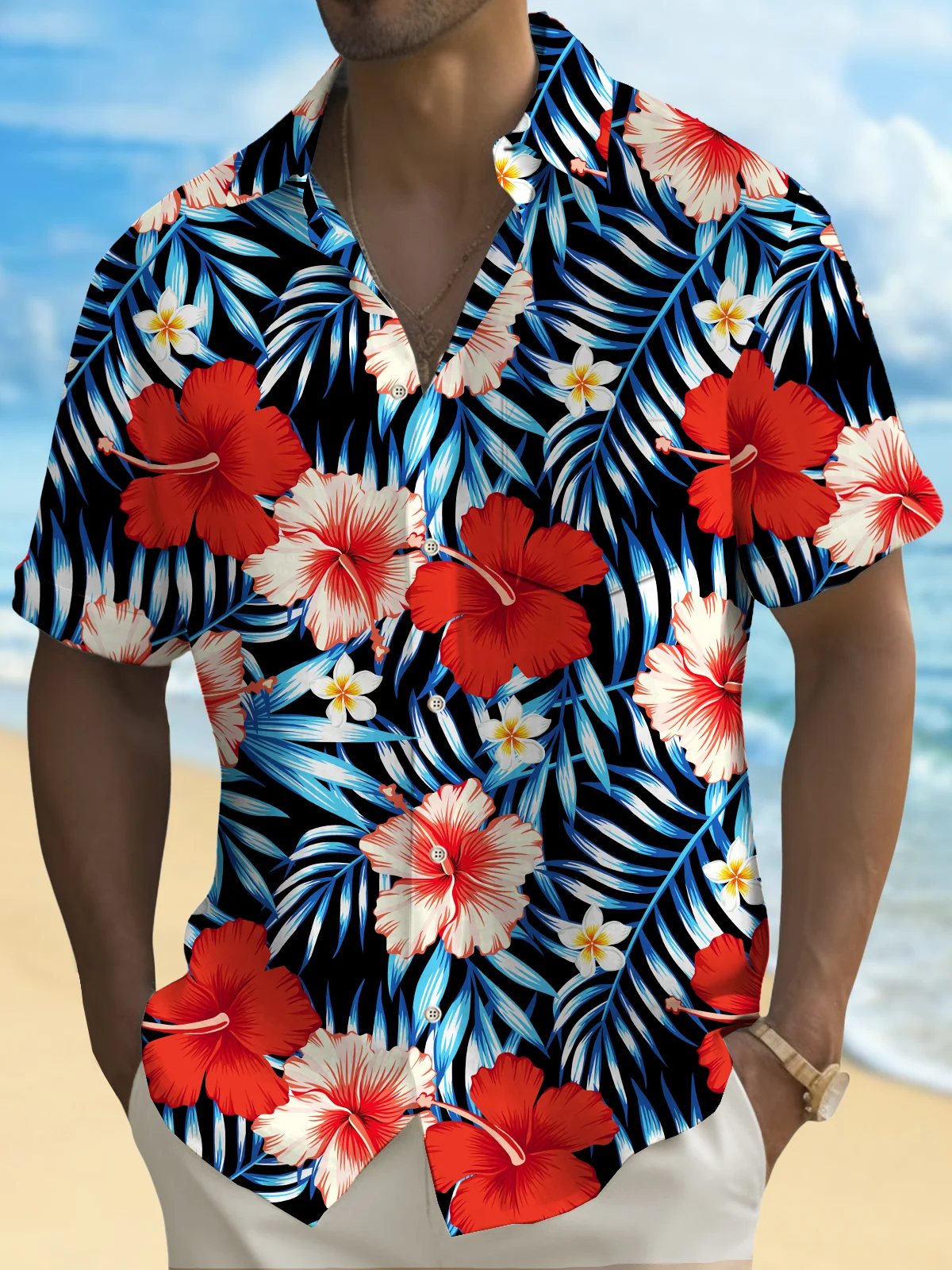 Royaura® Beach Vacation Men's Hawaiian Shirt Botanical Flower Print Pocket Camping Shirt Big Tall