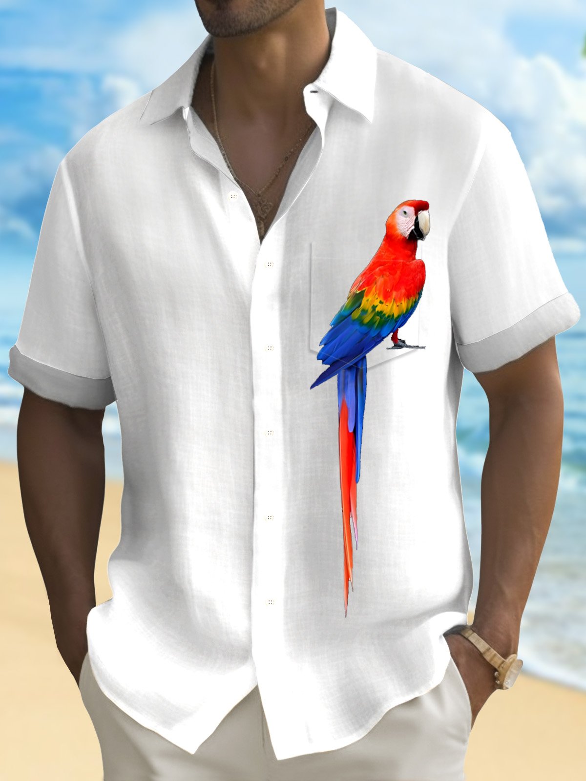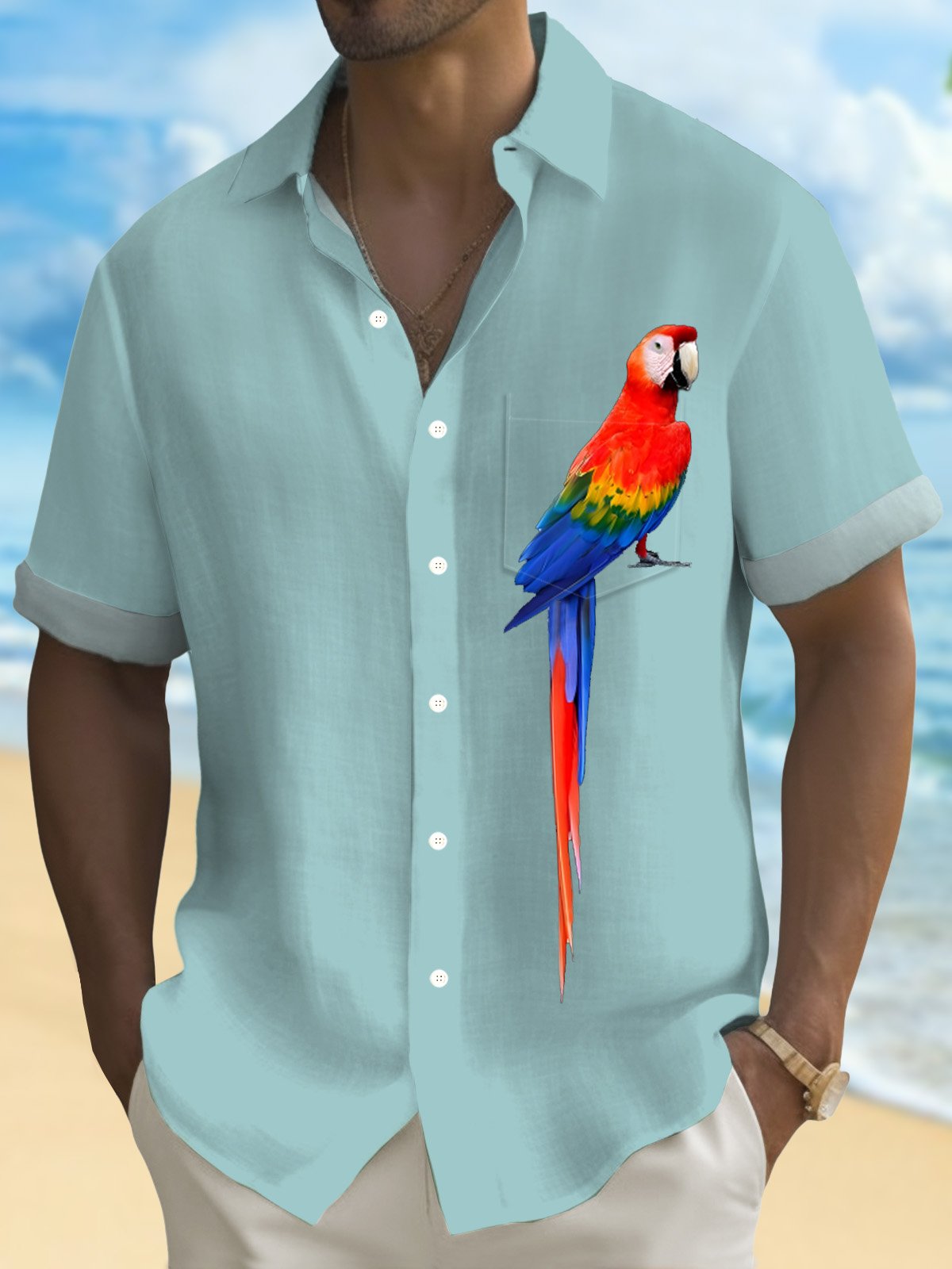 Royaura® Hawaii Parrot Printed Men's Button Pocket Short Sleeve Shirt