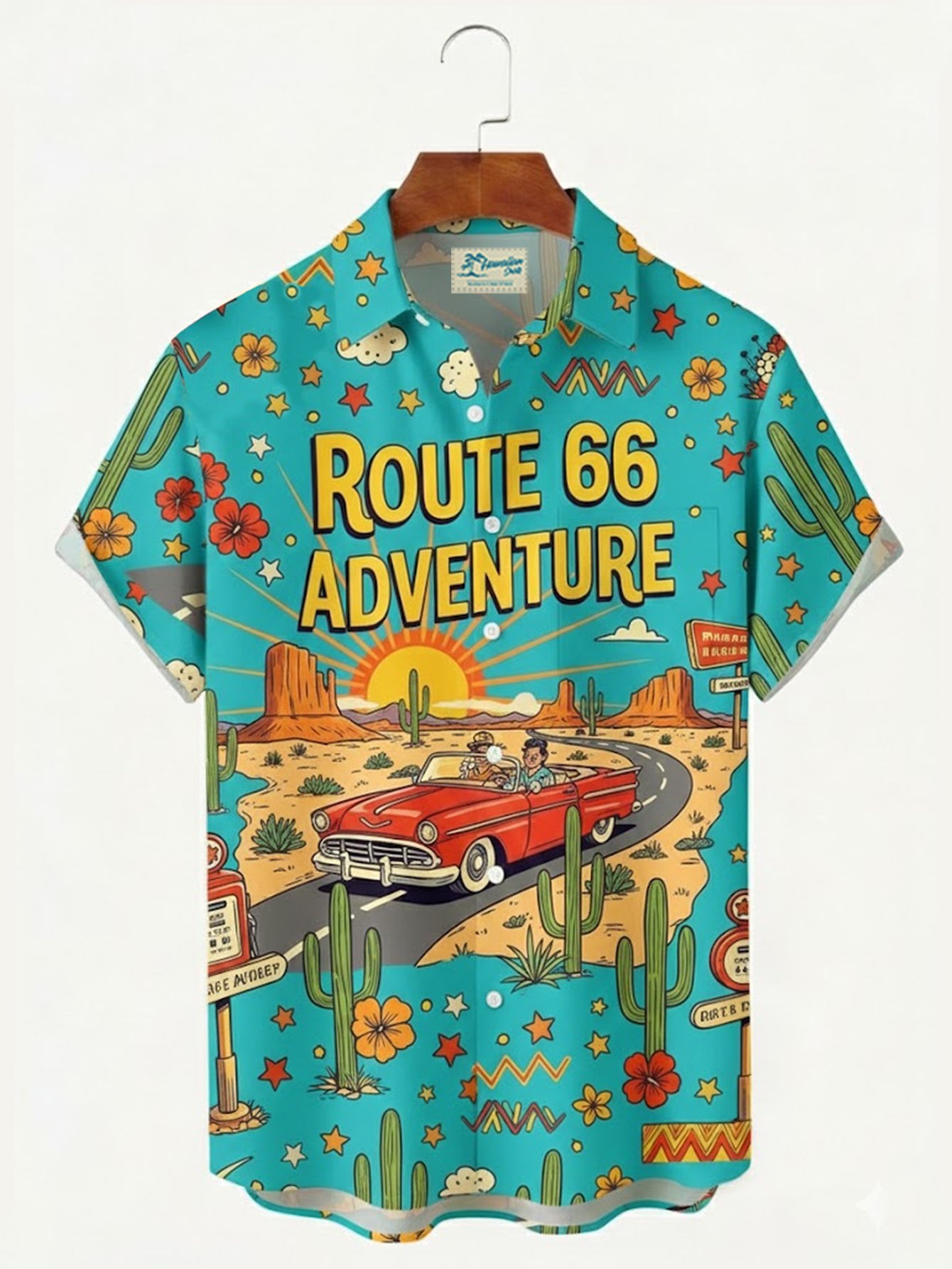 Royaura® Hawaii Route 66 Cactus Print Men's Button-Down Short-Sleeve Shirt Big & Tall