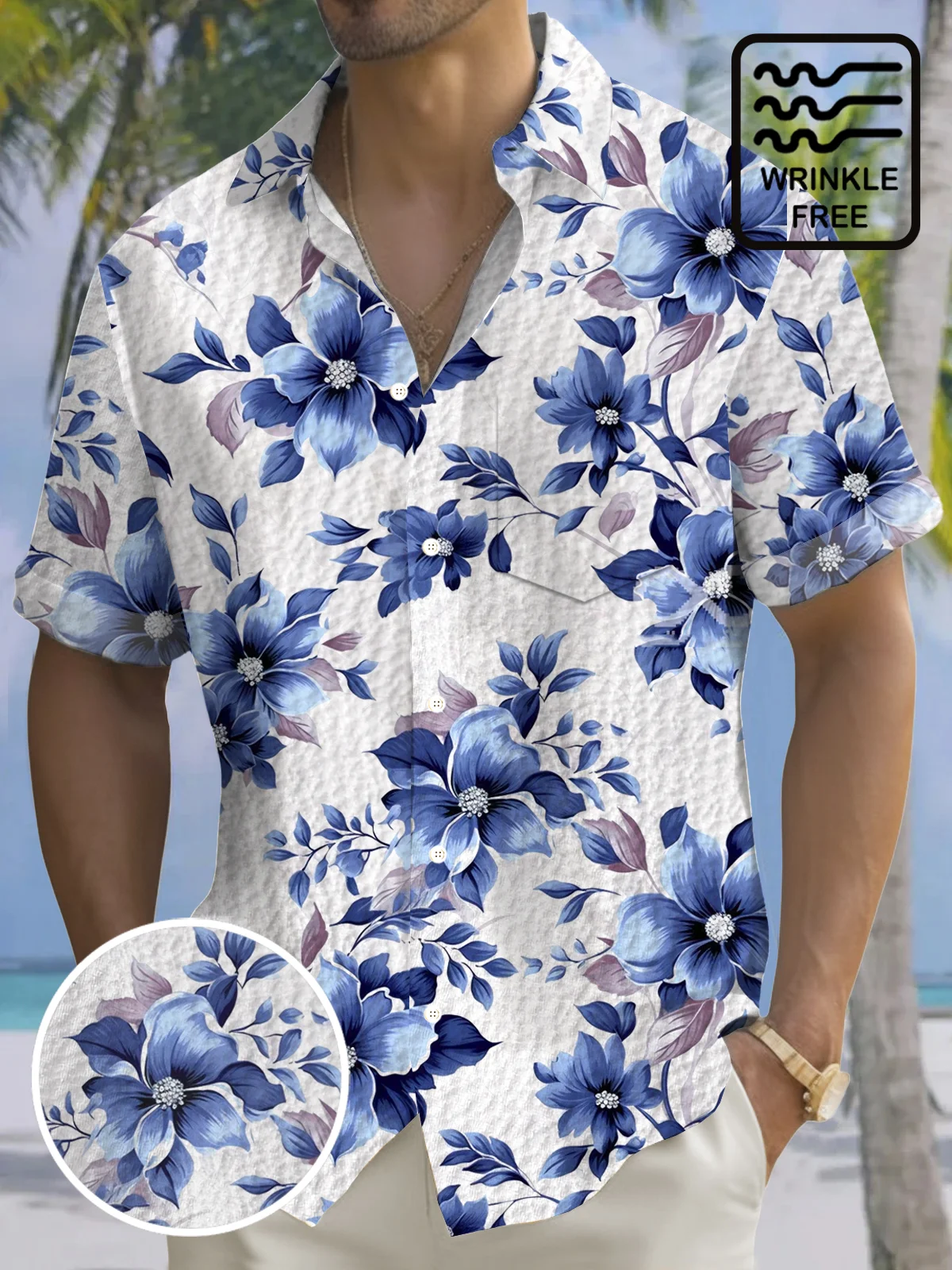 Royaura® Hawaiian Art Floral Print Men's Button-Down Short-Sleeve Shirt Big & Tall