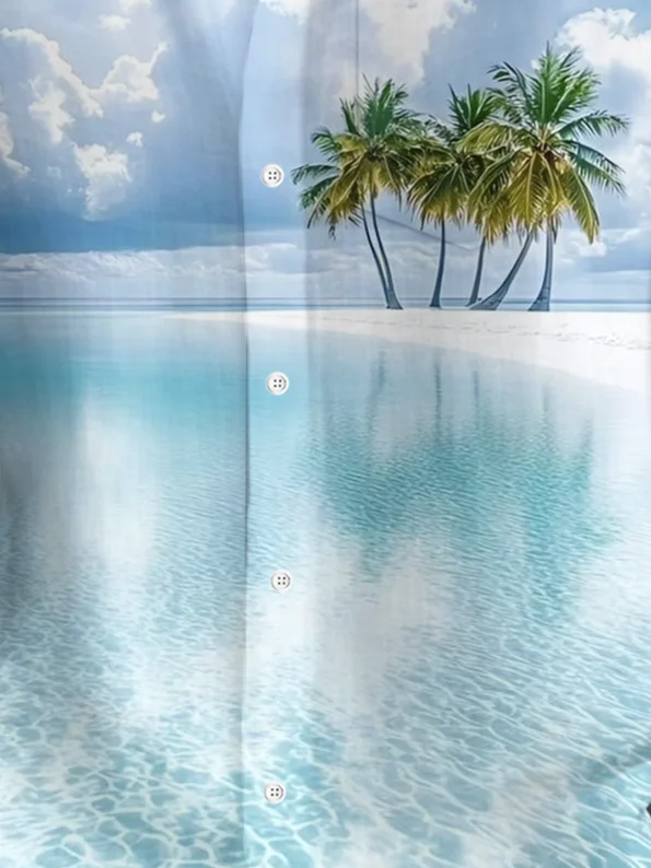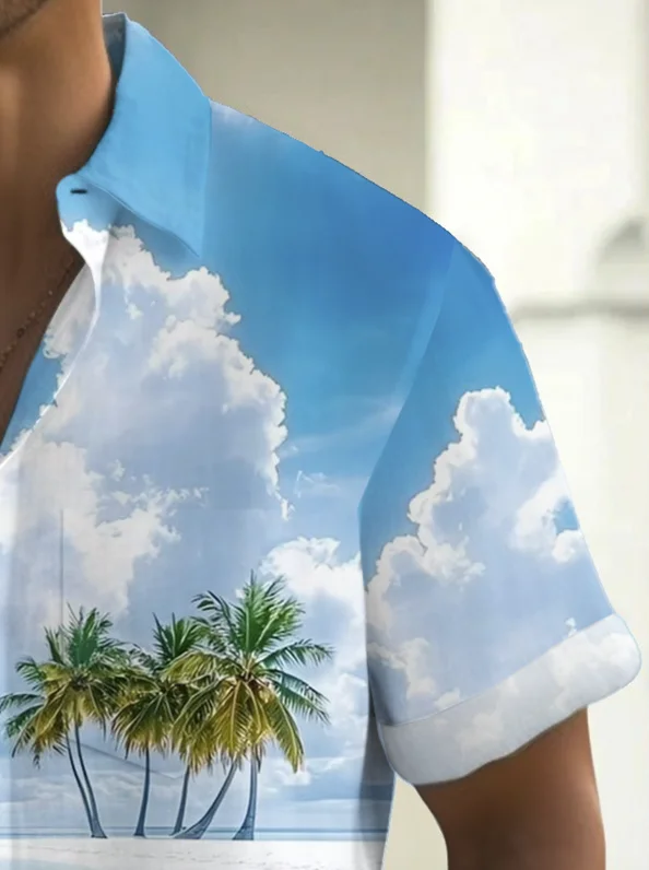 Royaura® Hawaiian Beach Palm Tree Print Men's Chest Pocket Stretch Short Sleeve Shirt Big & Tall