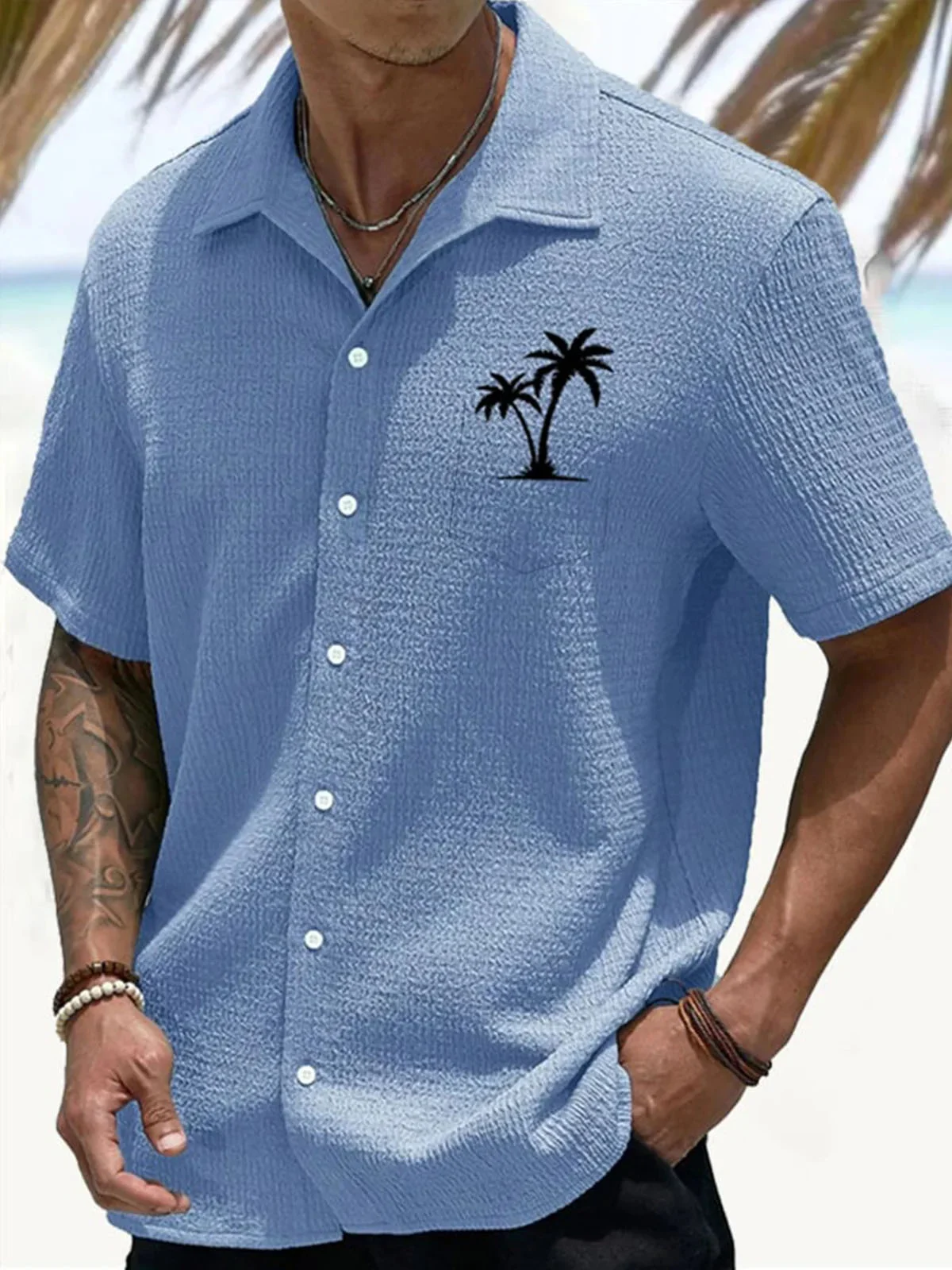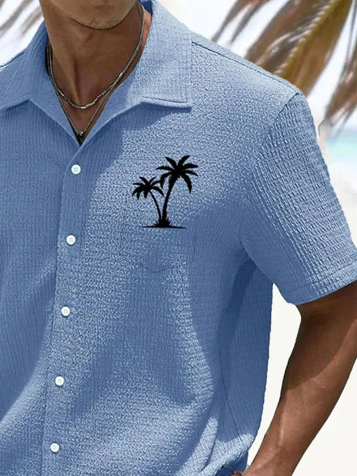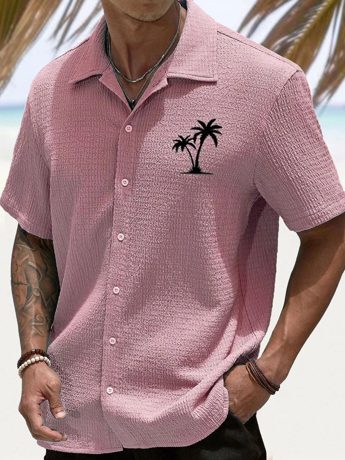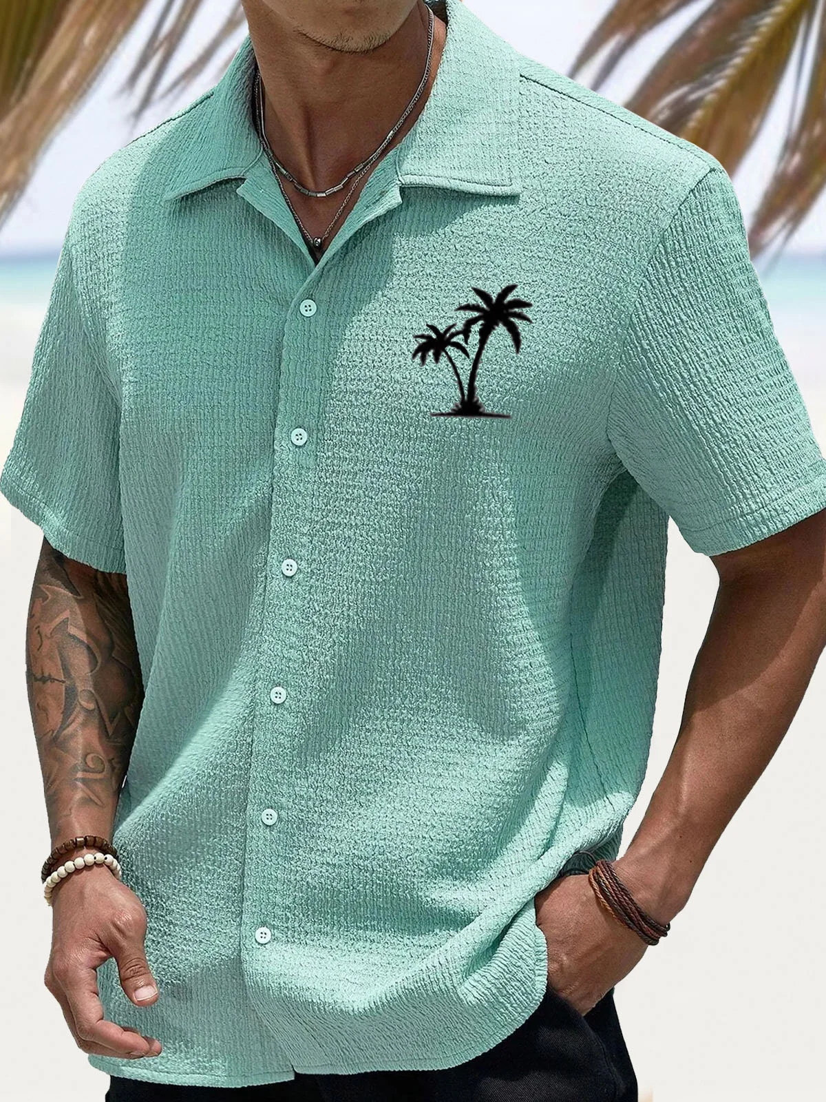 Royaura® Hawaiian Coconut Tree Puff Crepe 3D Digital Print Men's Button Pocket Short Sleeve Shirt Big & Tall