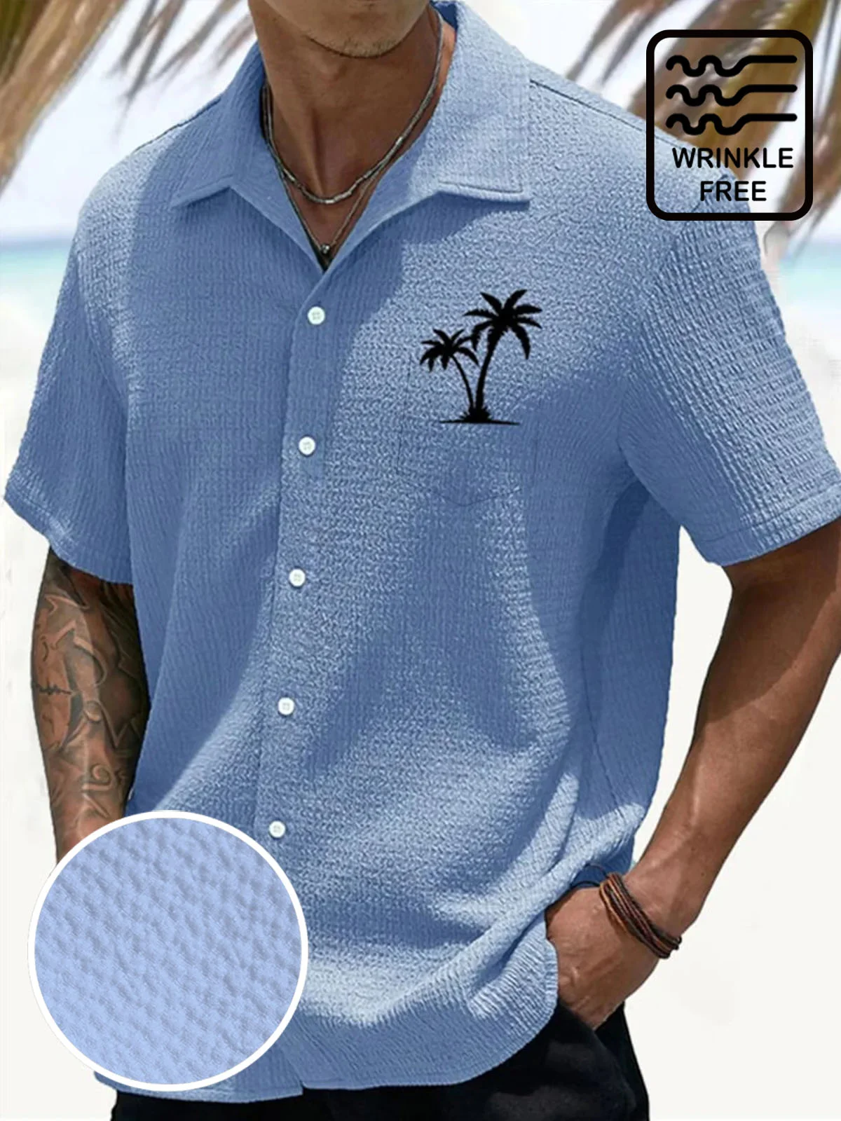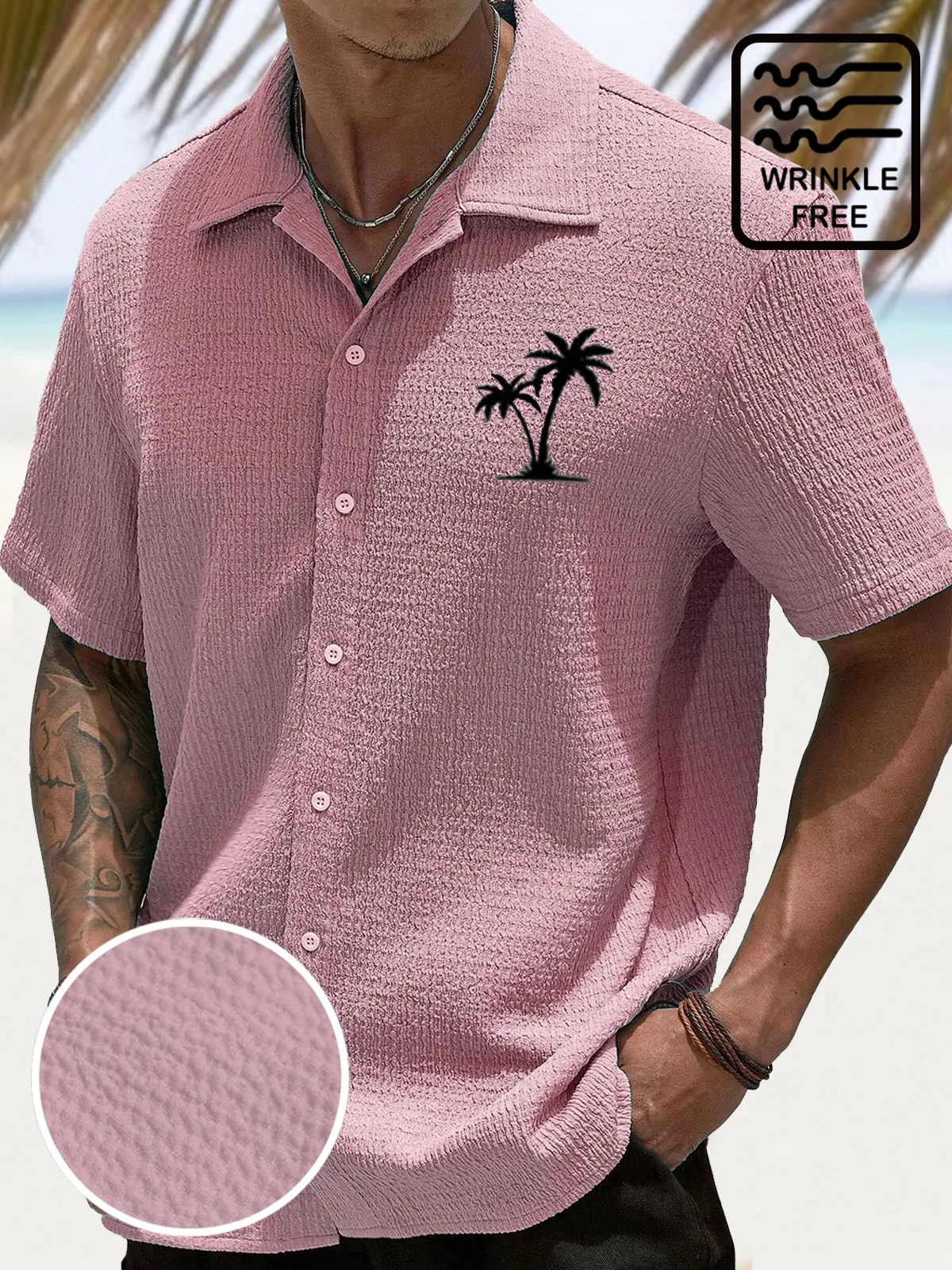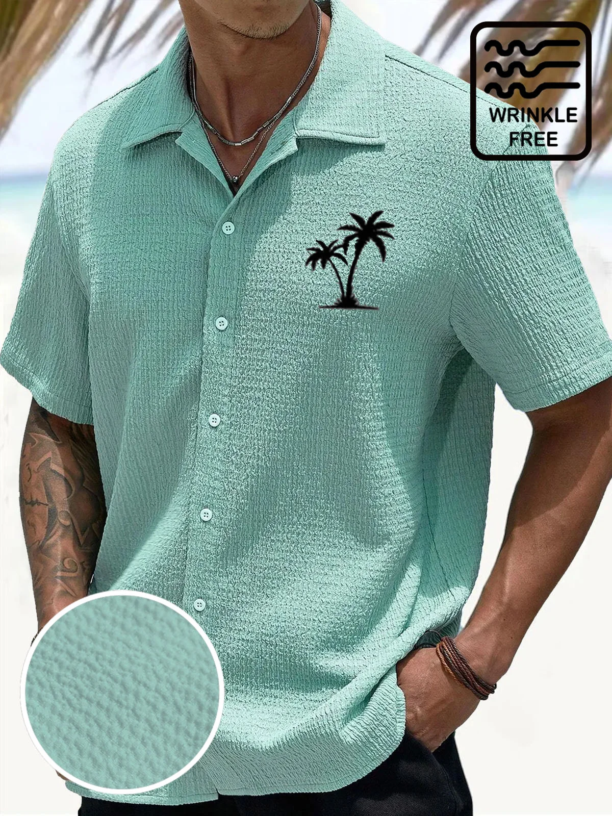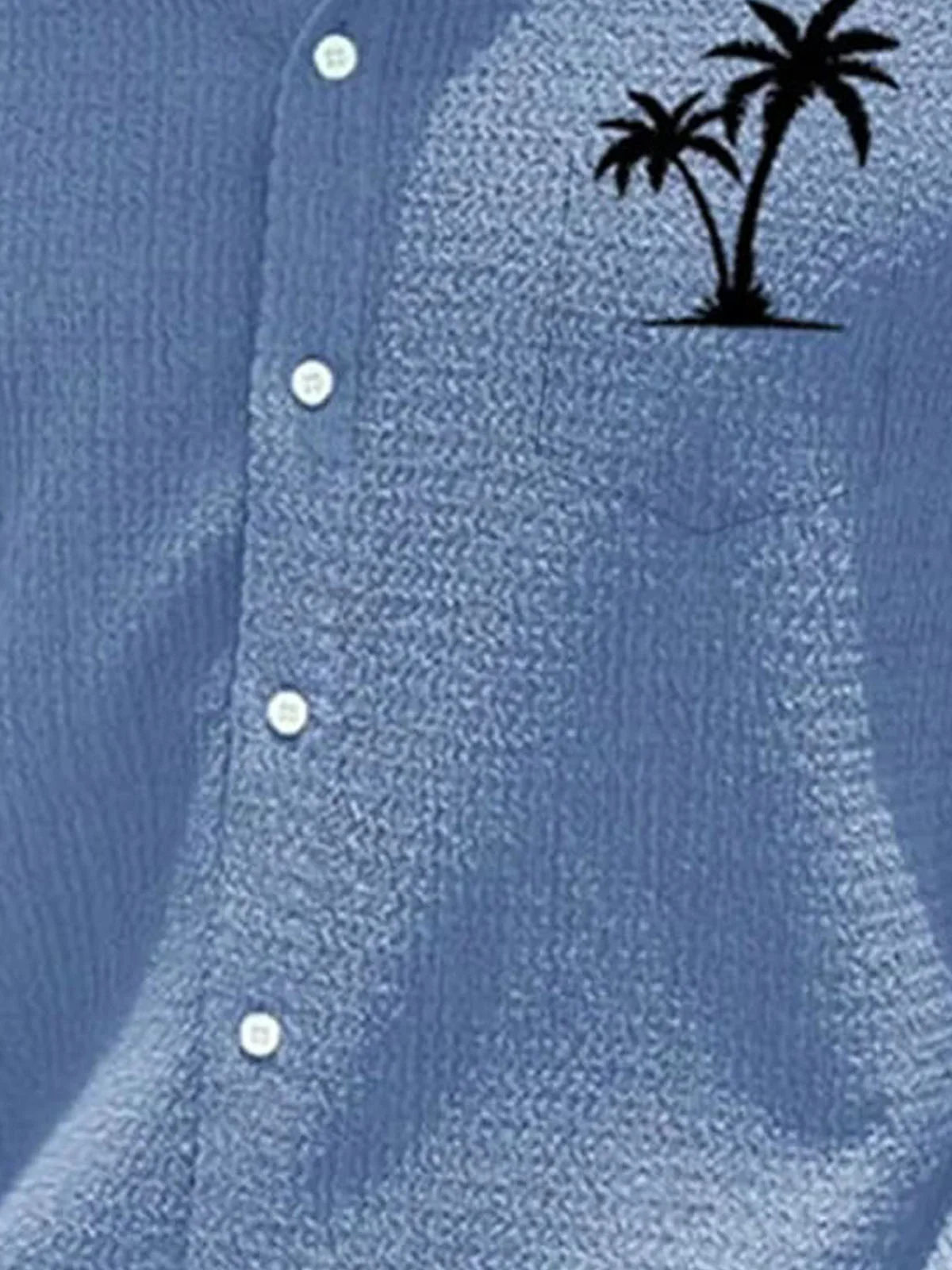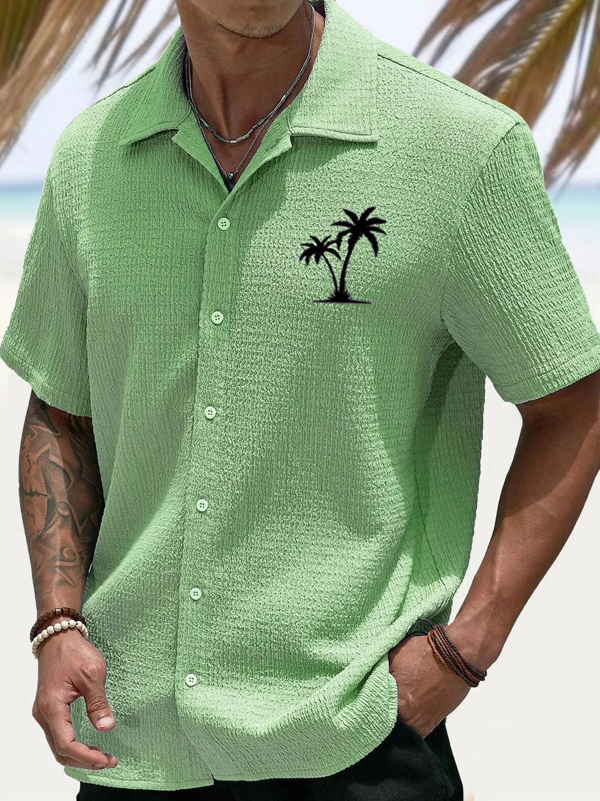 Royaura® Hawaiian Coconut Tree Puff Crepe 3D Digital Print Men's Button Pocket Short Sleeve Shirt Big & Tall