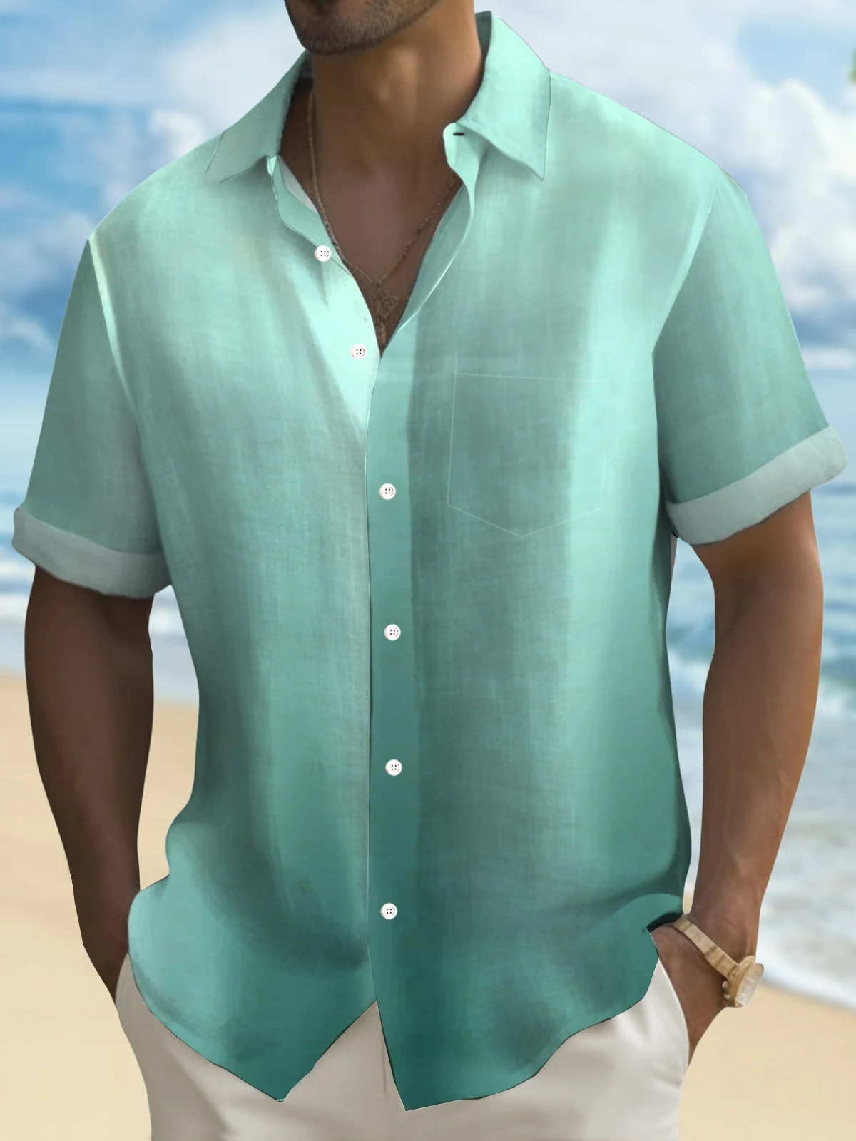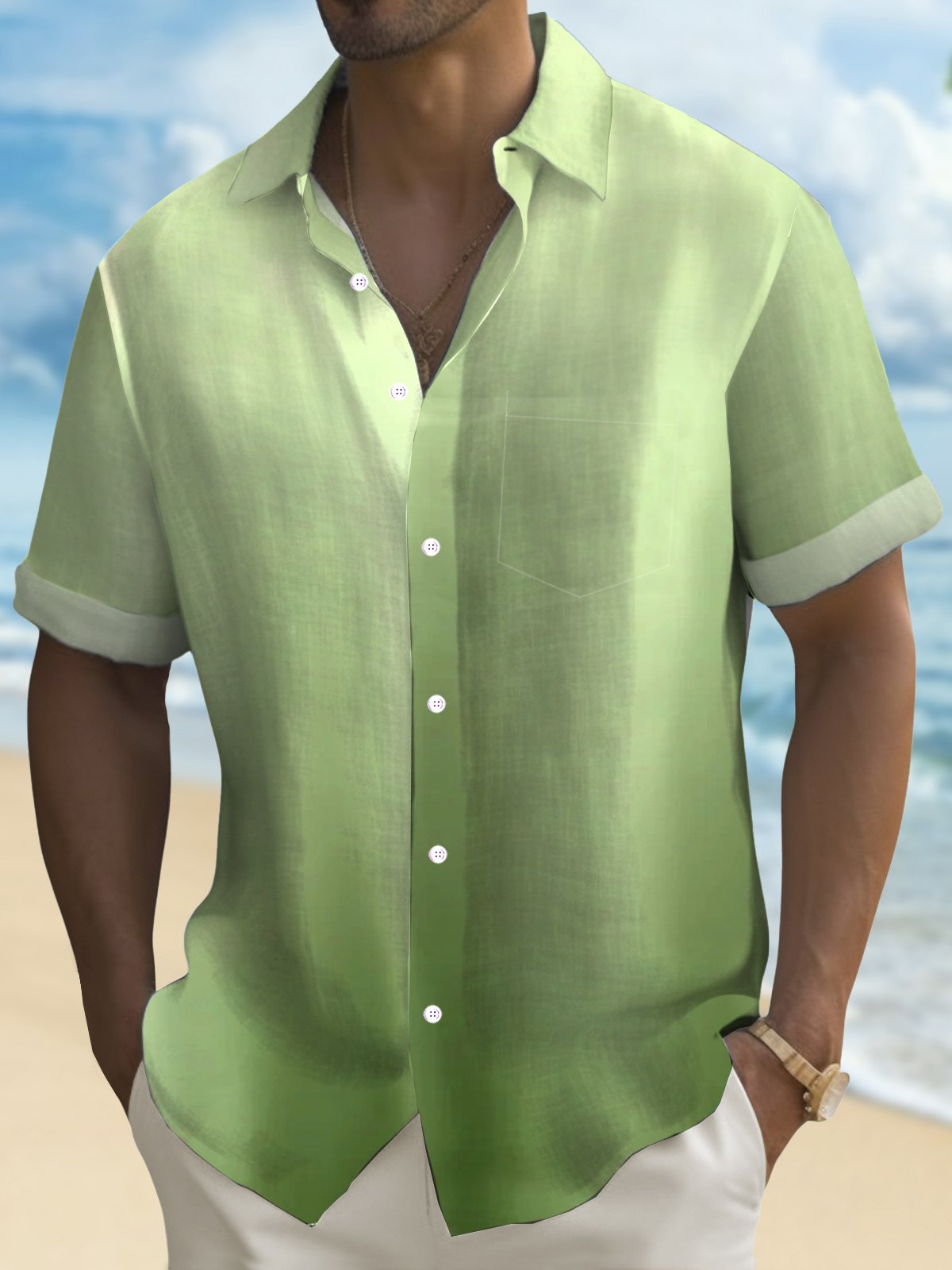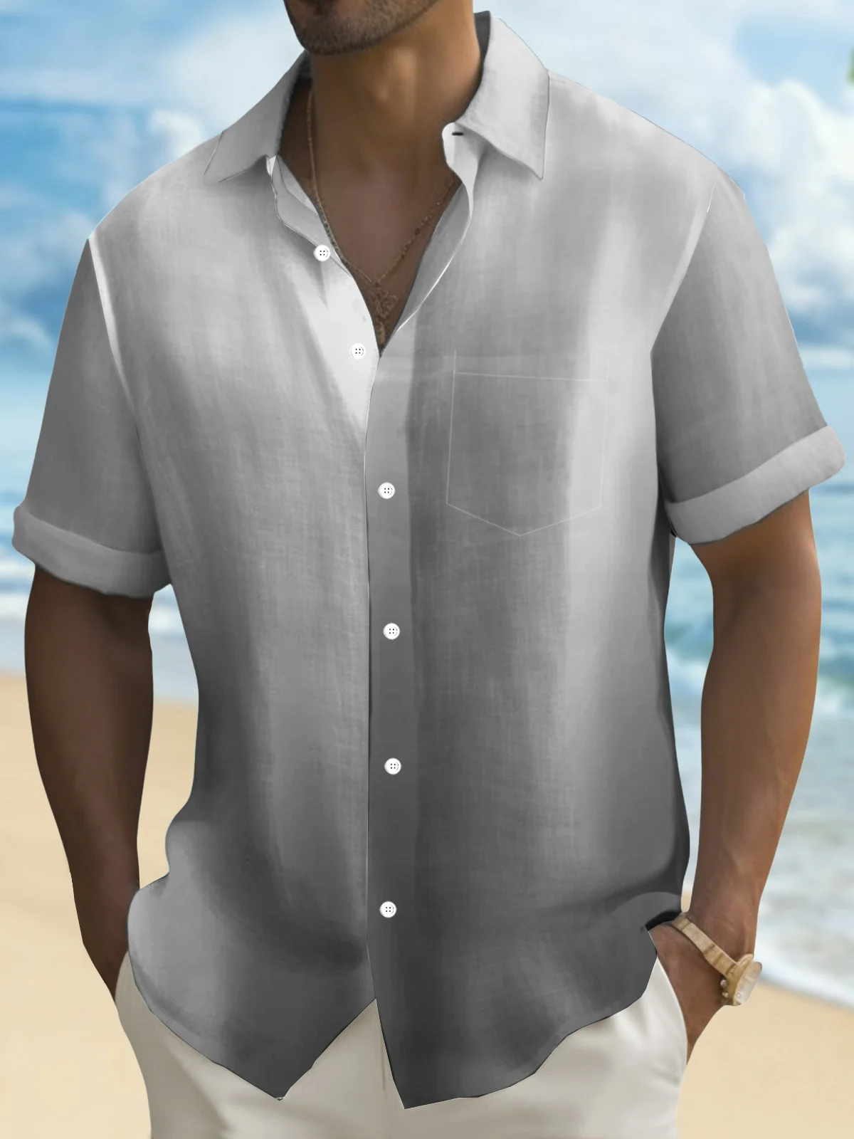 Royaura® Hawaiian Gradient 3D Print Men's Button Pocket Hawaiian Short Sleeve Shirt Big & Tall