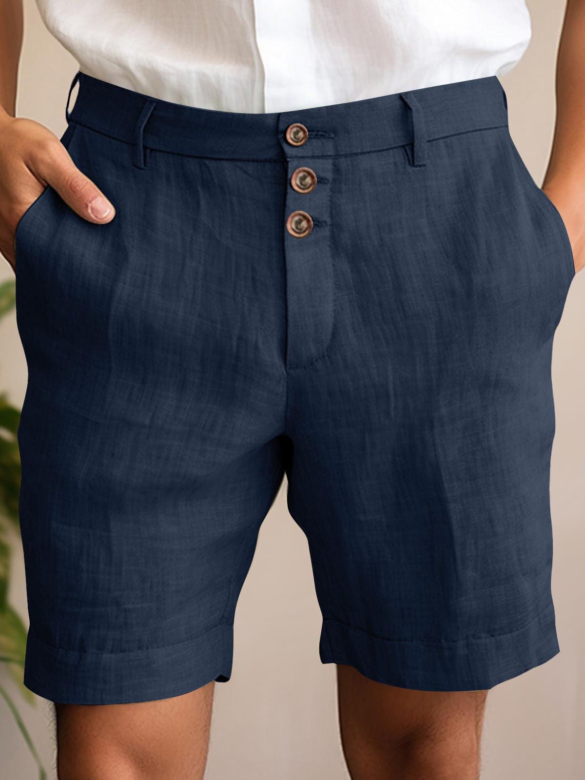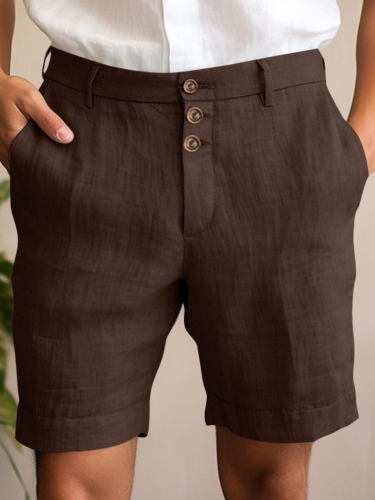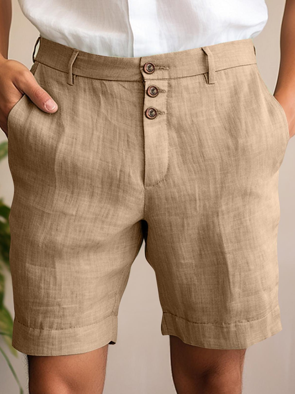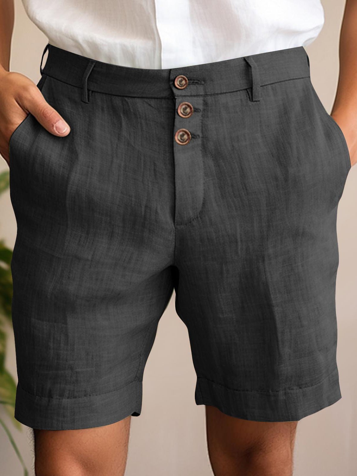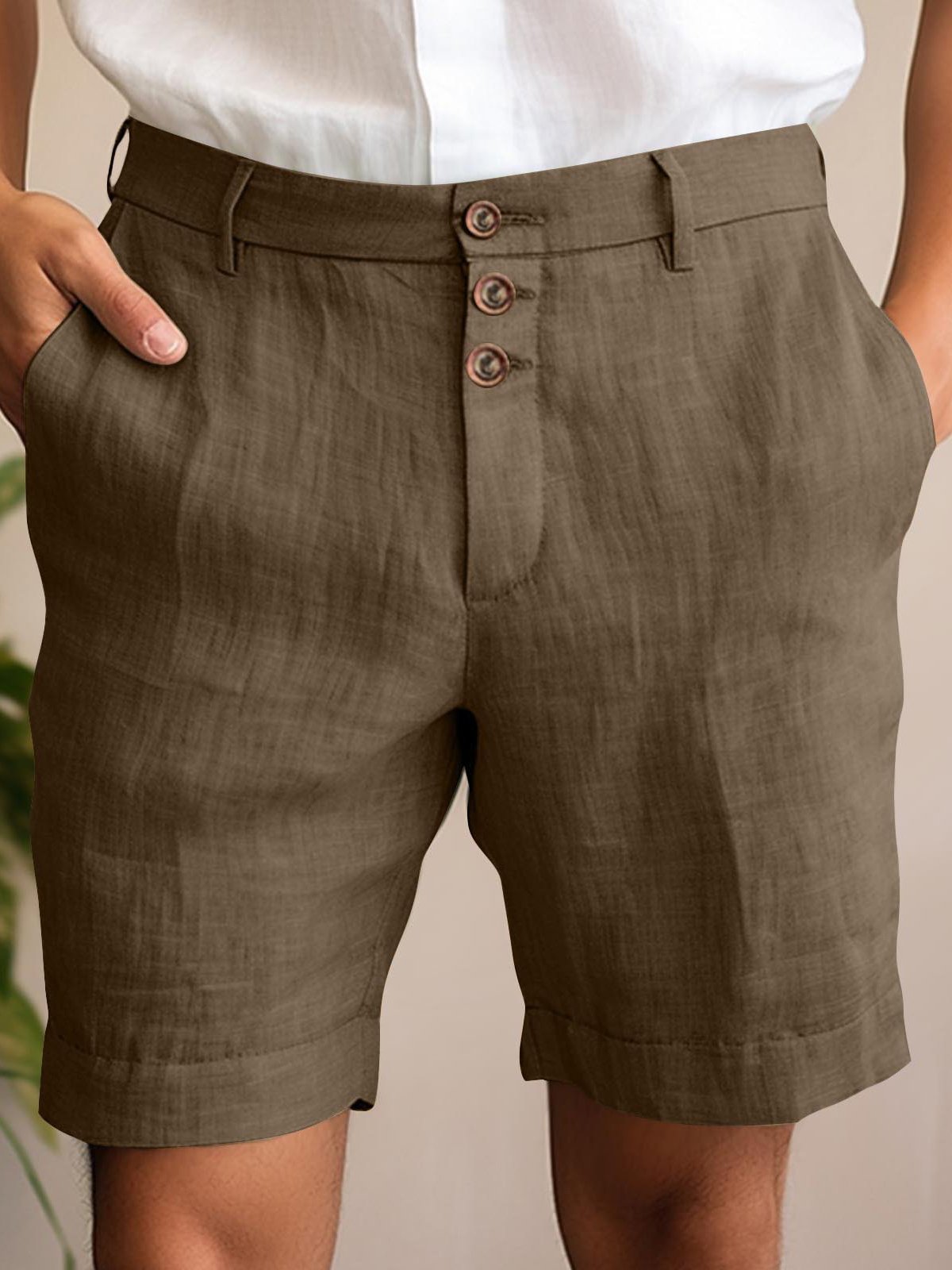 Royaura® Hawaiian Men's Linen Summer Comfort Breathable Pocket Button Beach Shorts