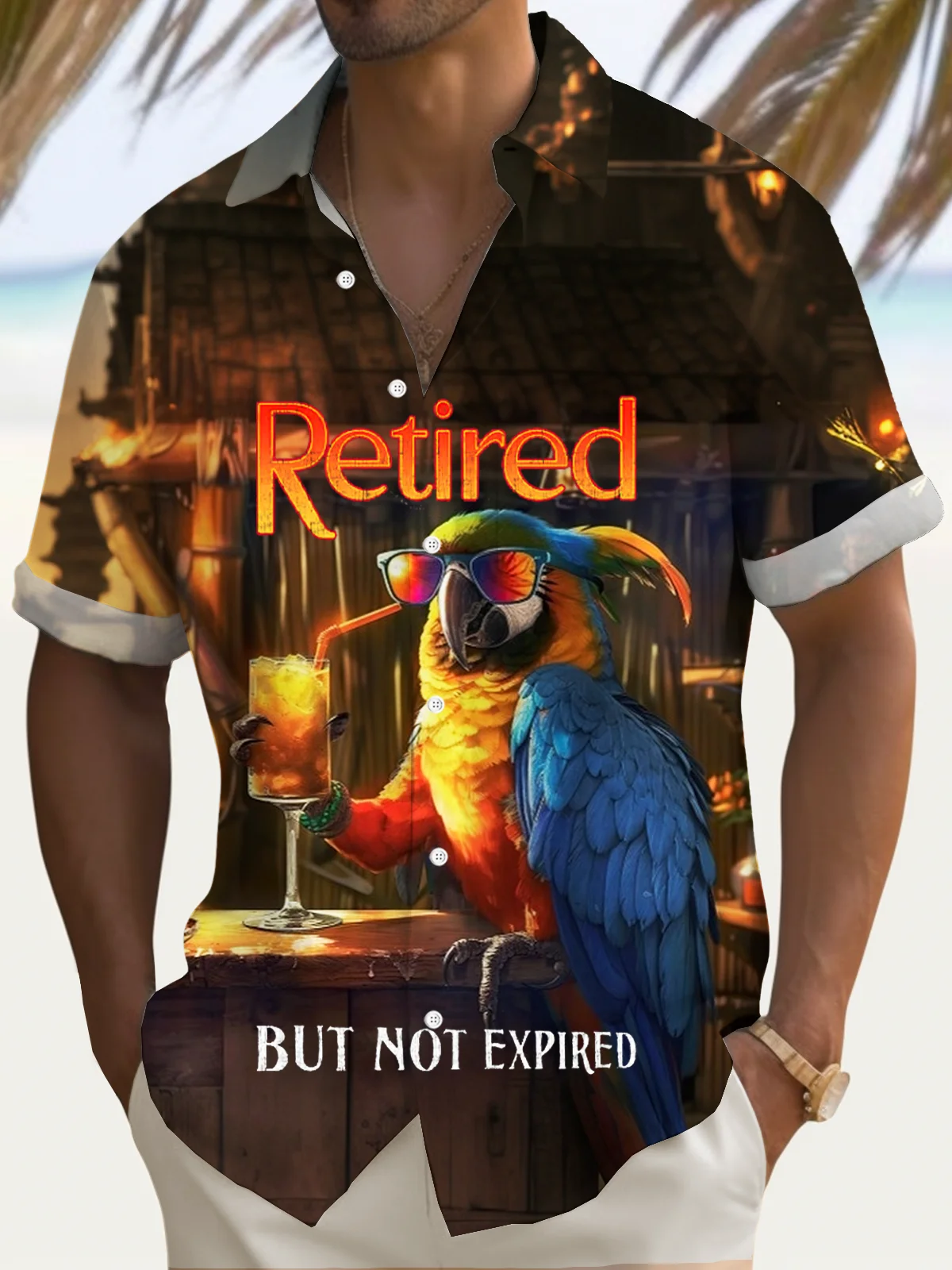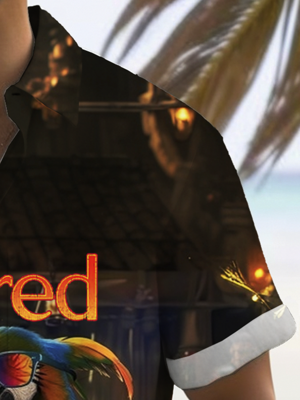 Royaura® Hawaiian Parrot Cocktail Art Printed Cabana Shirt Men's Button Pocket Short Sleeve Shirt Big & Tall