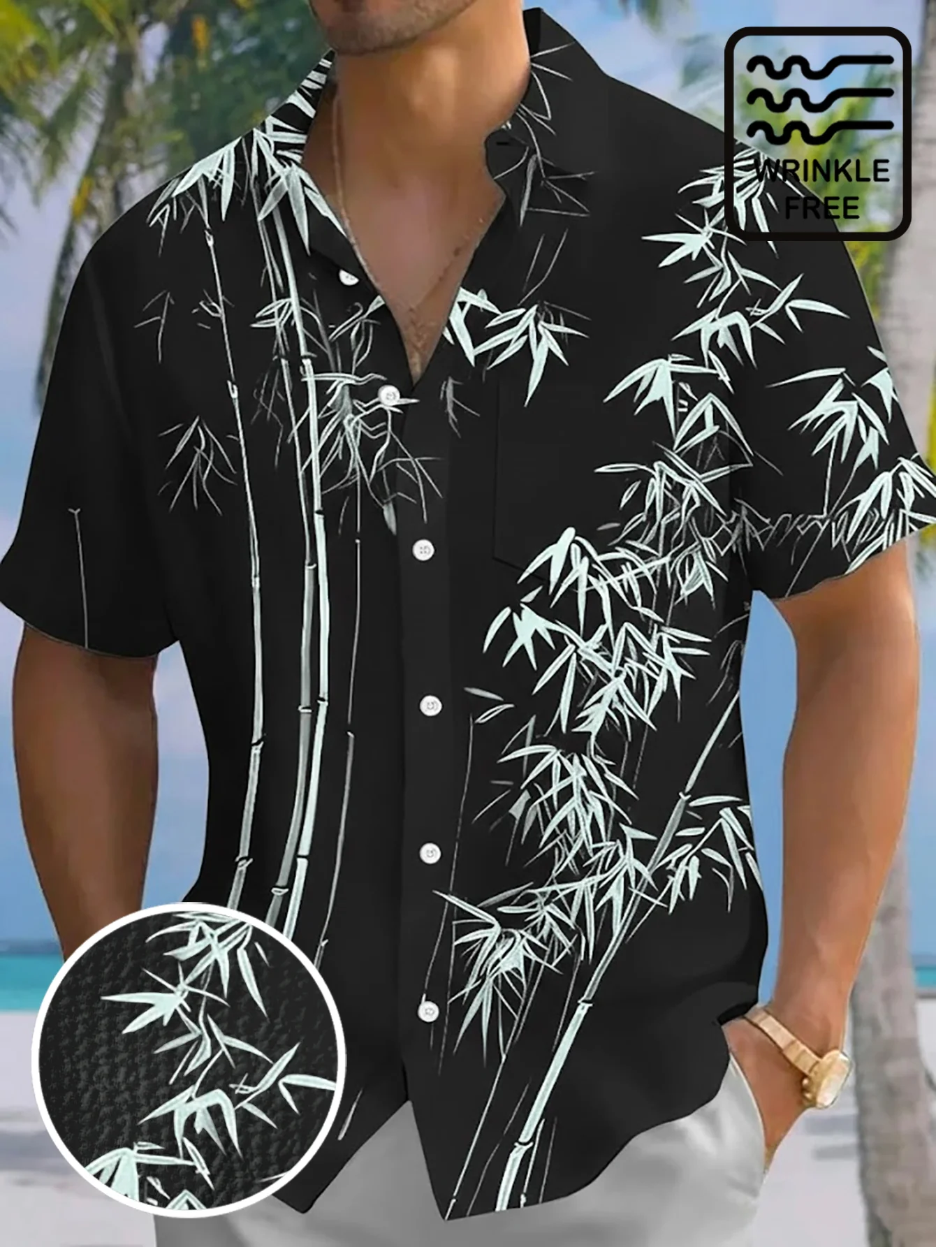 Royaura® Hawaiian Retro Bamboo Print Men's Button-Down Short-Sleeve  Shirt Big & Tall